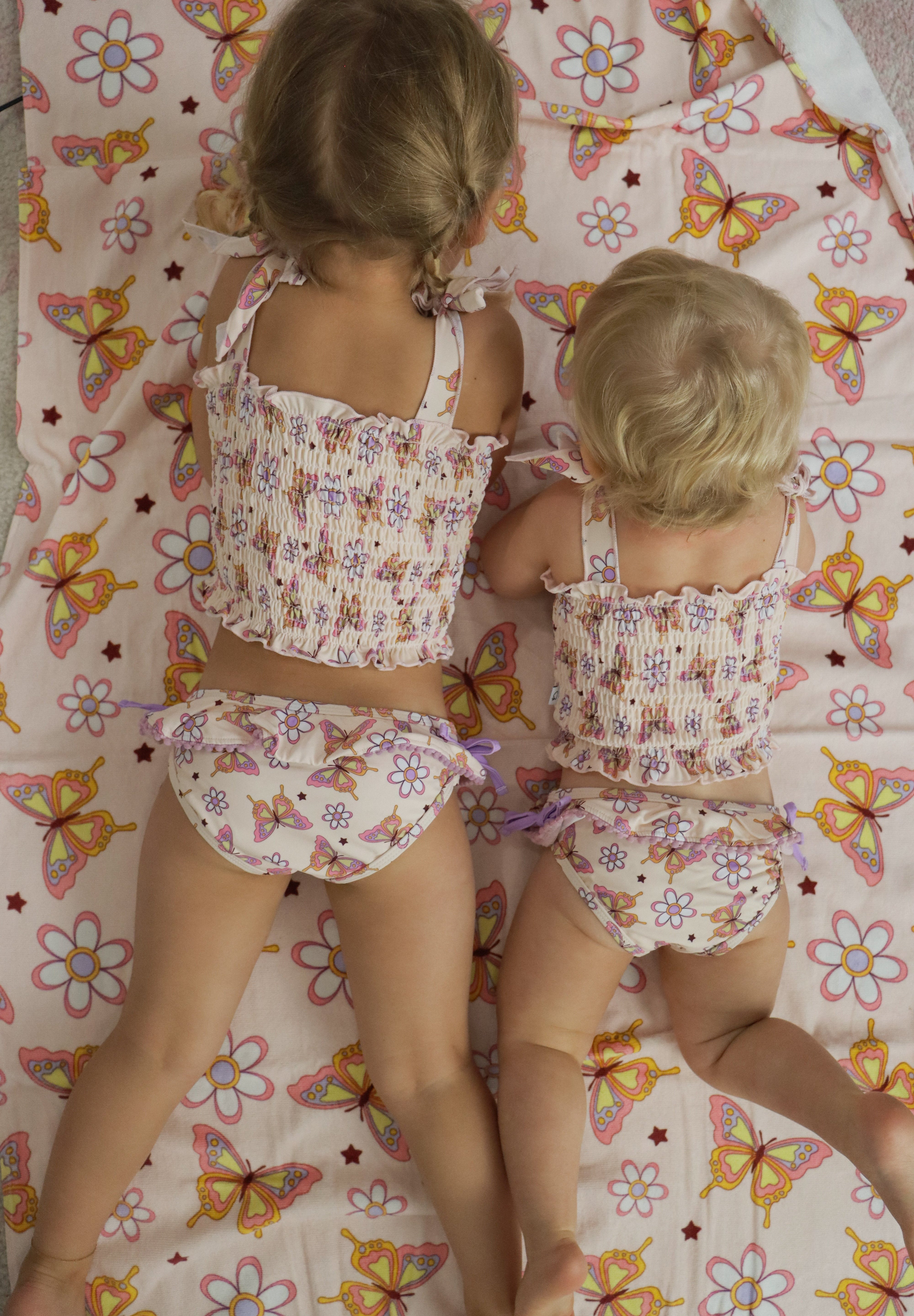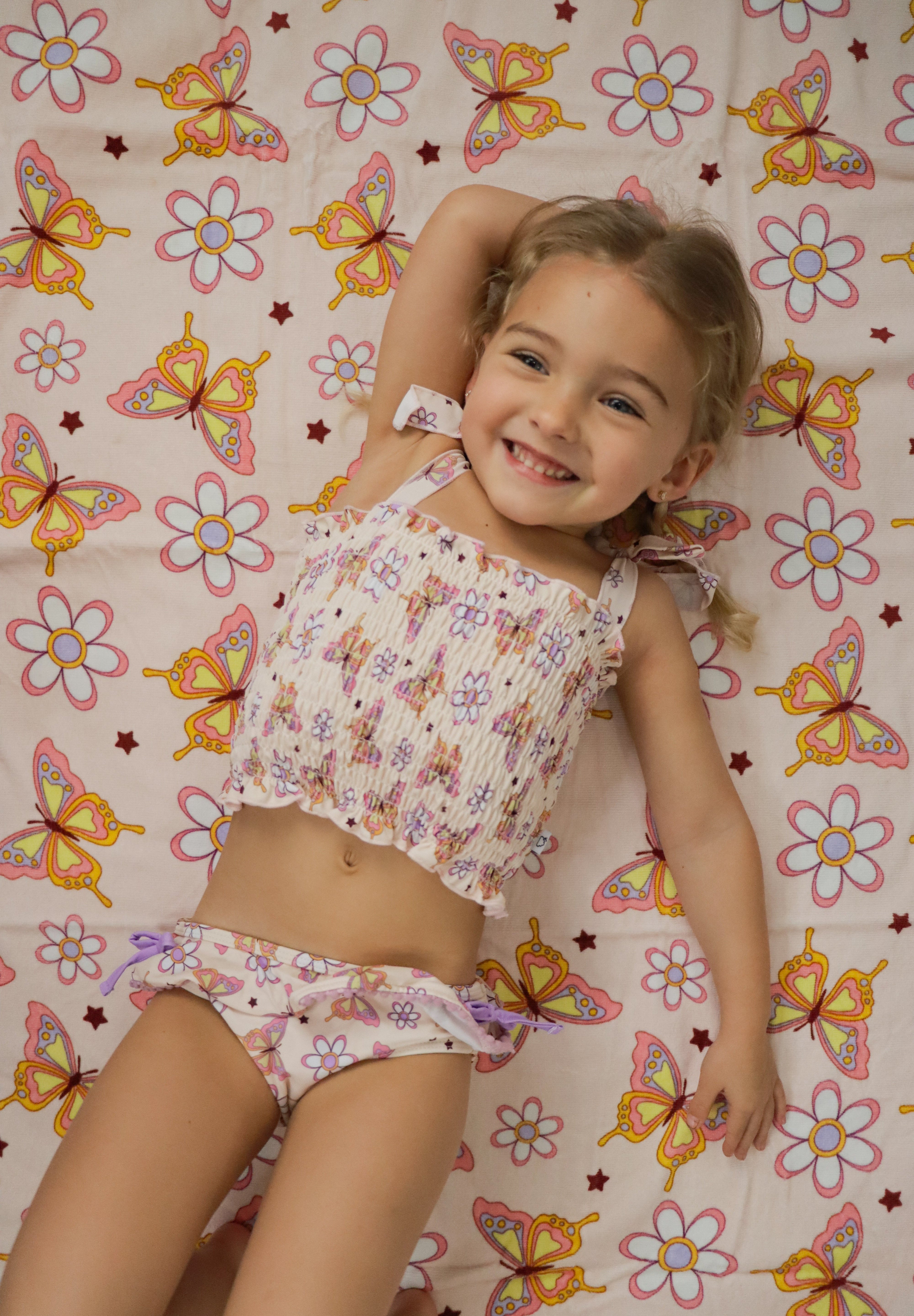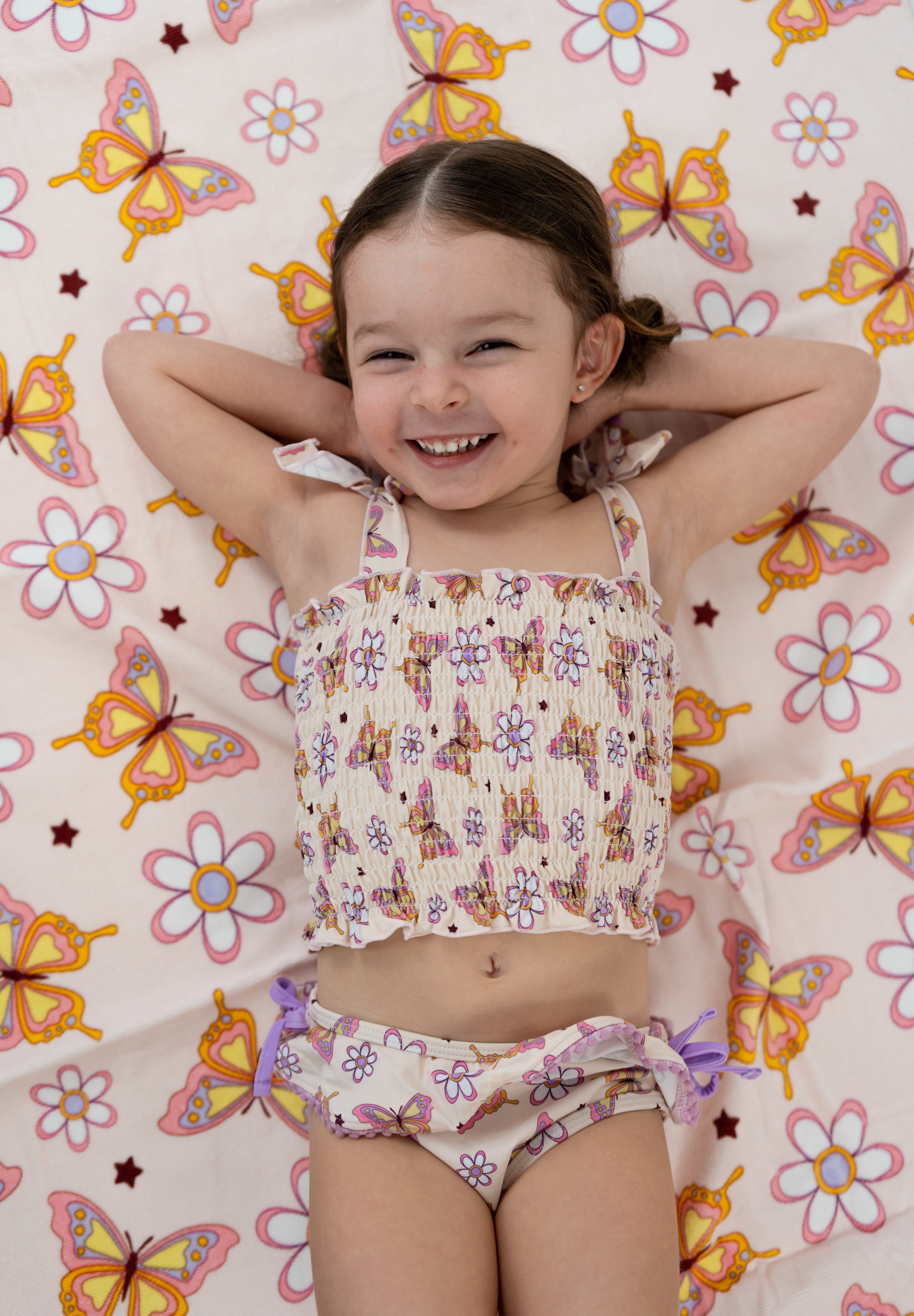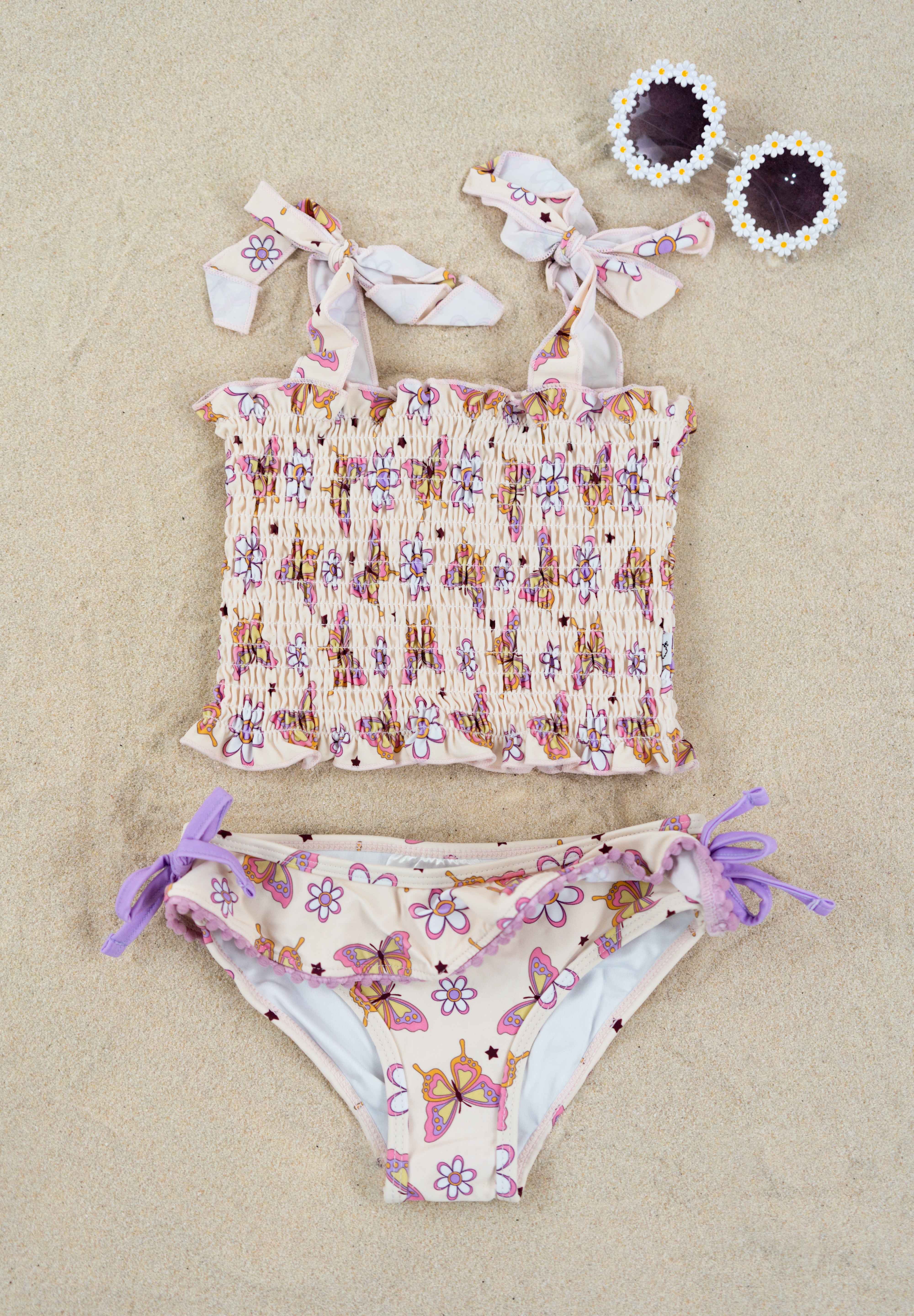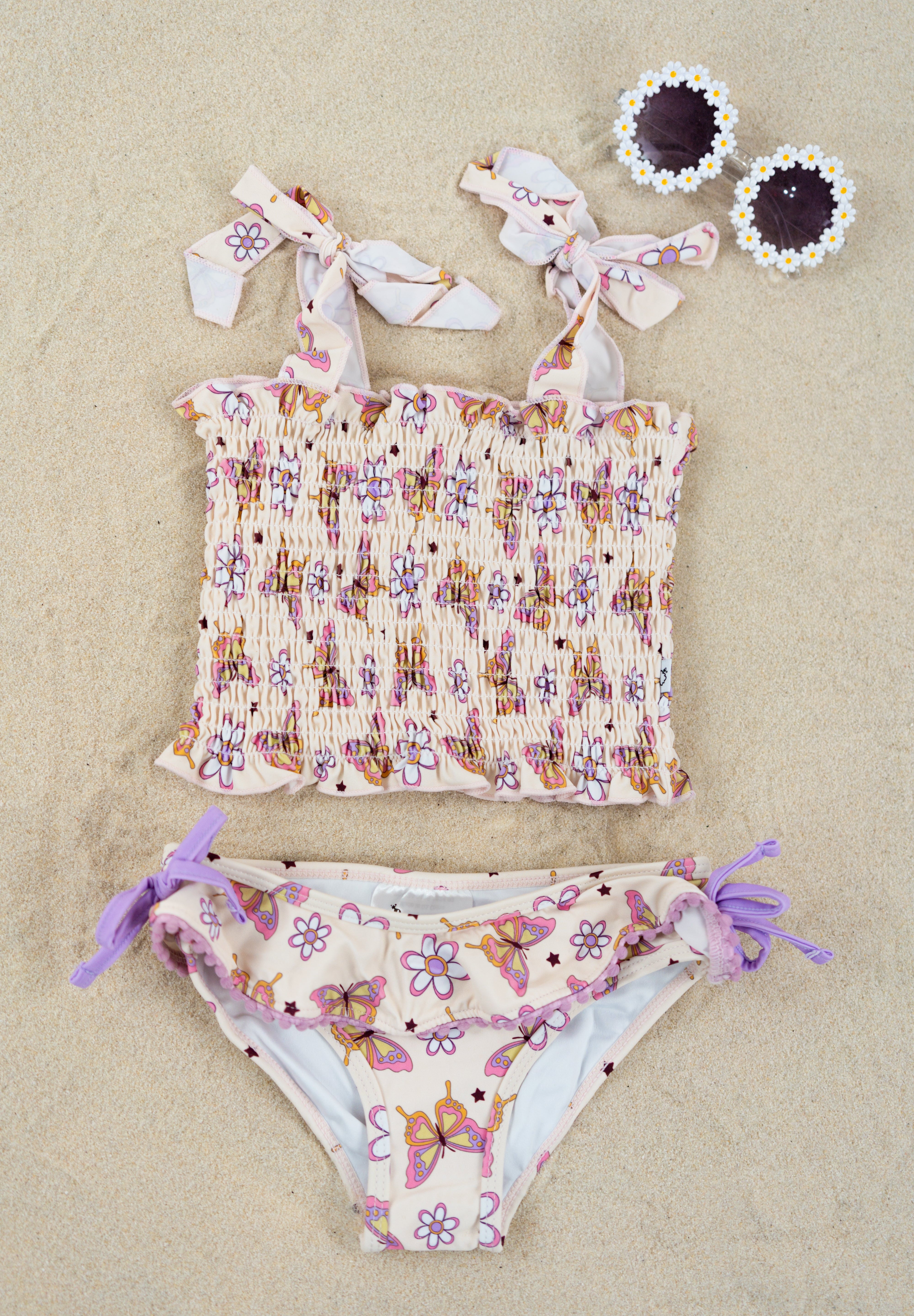 BLOSSOMIN’ BUTTERFLY DREAM SMOCKED TANKINI TWO PIECE SWIM SUIT