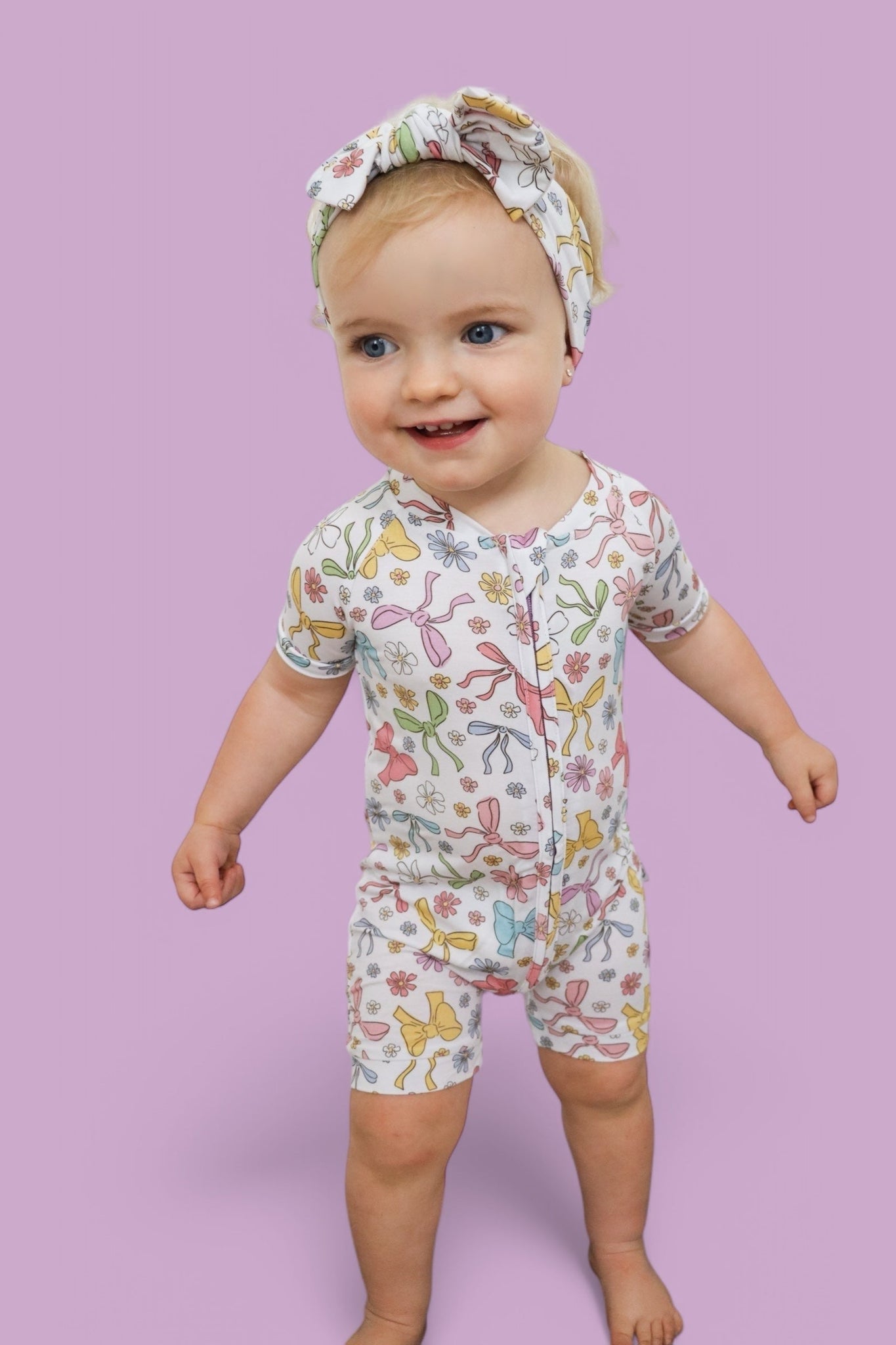 Whether it's playtime in the garden or cozy snuggles at home, the Bow Garden Dream Shortie offers the perfect blend of style and functionality. Let your child bloom in comfort and cuteness with this springtime essential!