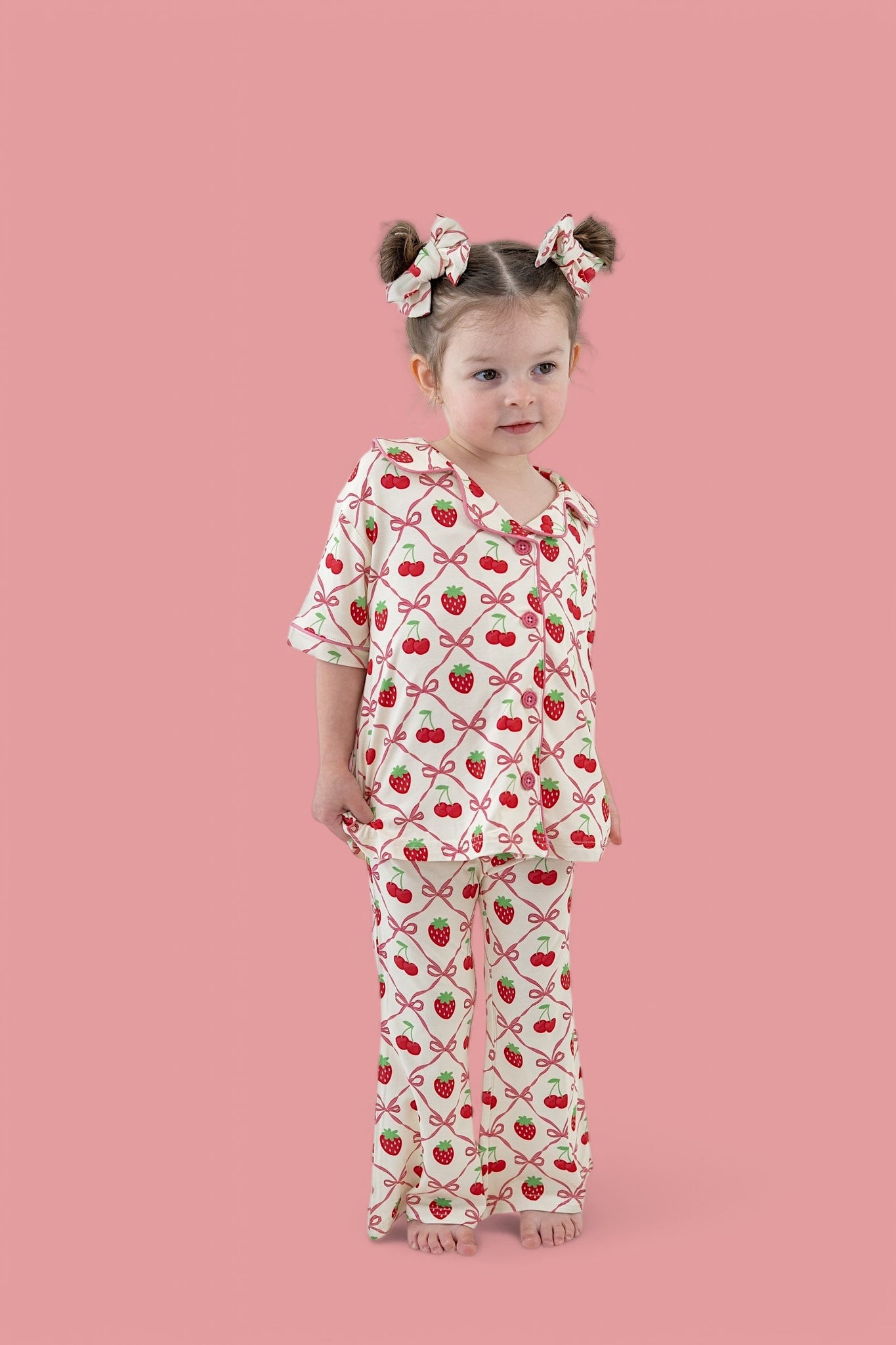 - Playful design with strawberries, cherries, and bows