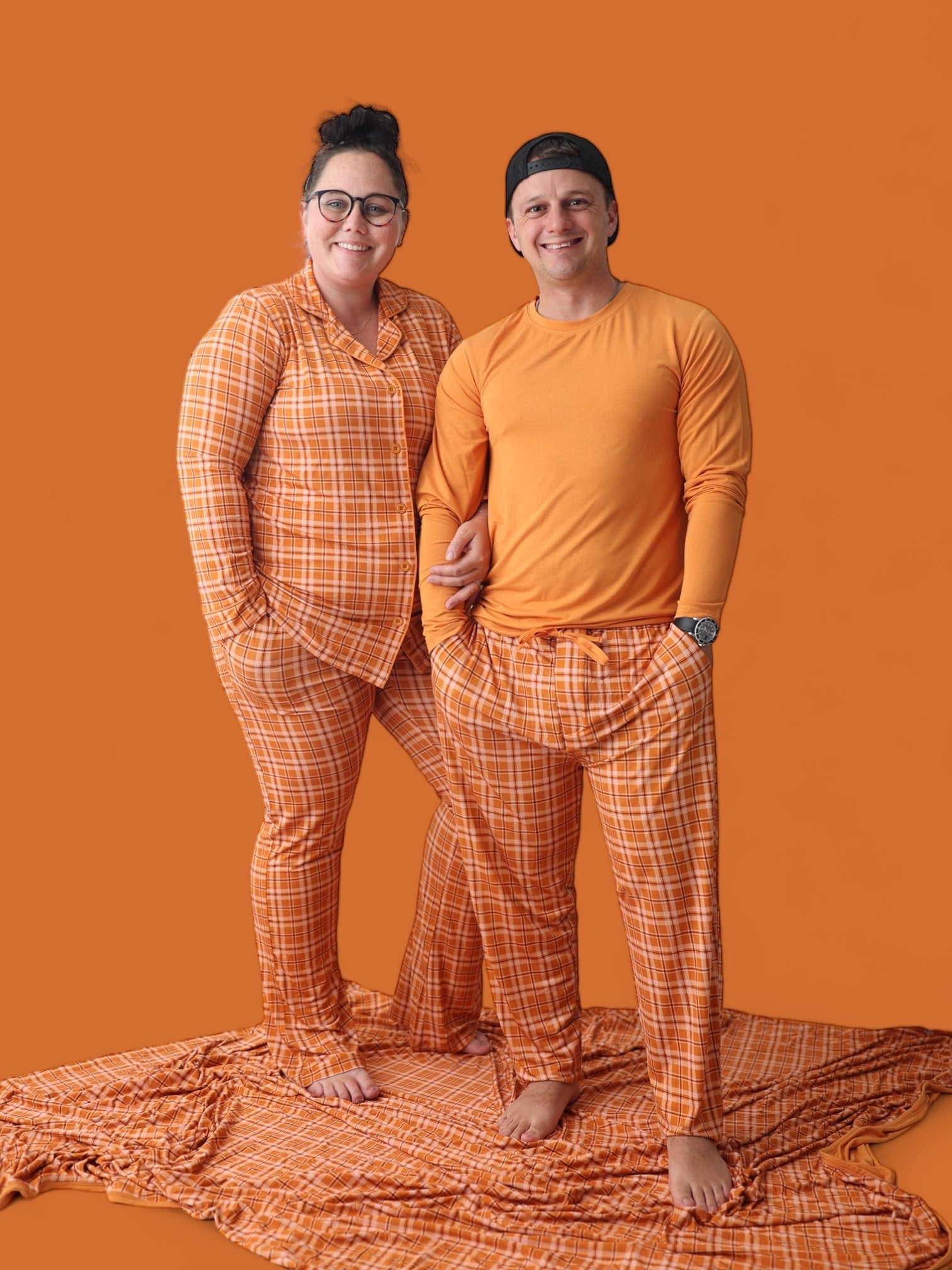 Complete your fall look with our Cider Plaid Dream Men's Top. Expertly crafted with solid material that pairs seamlessly with our Cider Plaid joggers. Stay stylish and comfortable this season.