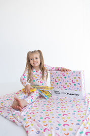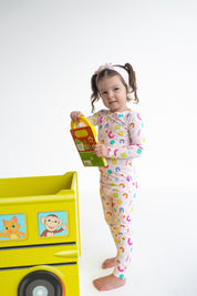 Get ready for a fun, colorful adventure with the CoComelon x Dream Big Little Co Alphabet Dream Set! Designed for comfort and style, this pajama set features a playful print with scattered letters in bright, cheerful colors that spell out "CoComelon." The vibrant design adds a touch of whimsy to your little one's bedtime routine while sparking their imagination.