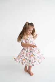 Get ready to make your little one's heart sing with the adorable CoComelon x Dream Big Little Co JJ Rainbow Checkers Dream Ruffle Dress! This delightful dress features a soft light pink and white checkerboard print, decorated with cheerful rainbows, vibrant flowers, and, of course, your favorite CoComelon character, JJ. Perfect for playdates, birthday parties, or just a day full of fun, this dress is sure to brighten any room.