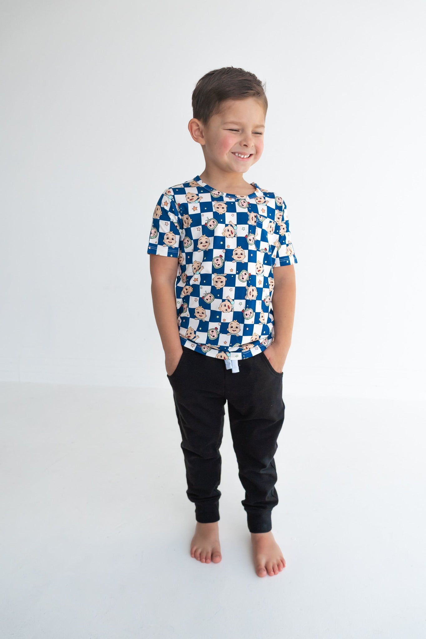 Dream Big Little Co x CoComelon JJ STARRY NIGHT CHECKERS DREAM POCKET TEE
