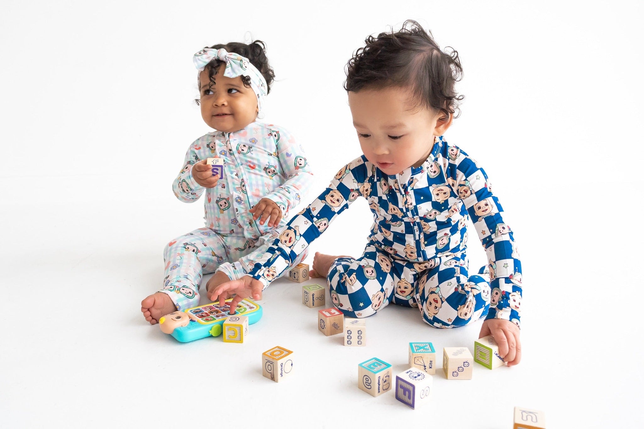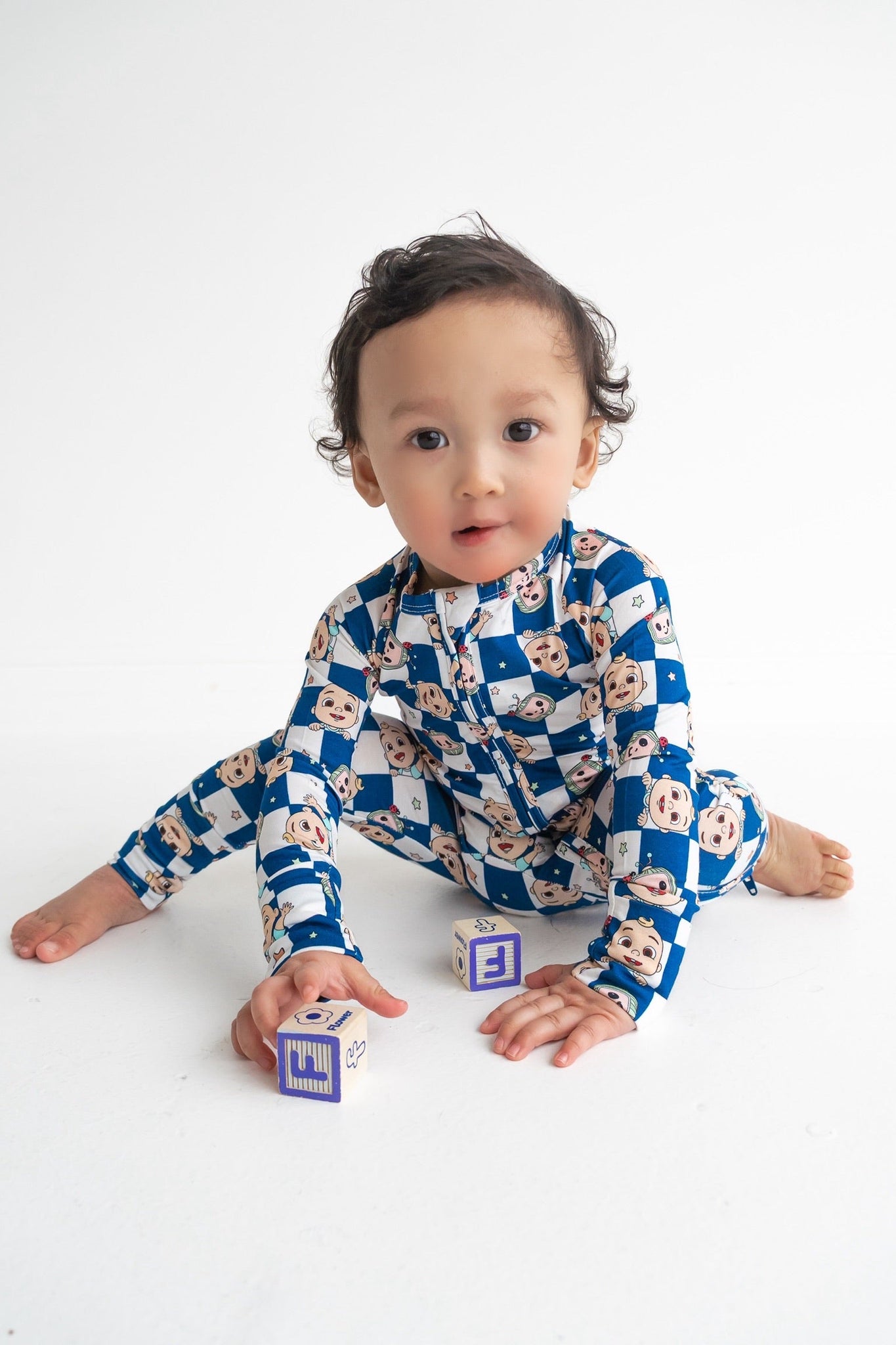 Let your little dreamer snuggle up with JJ and the CoComelon crew in our exclusive Starry Night Checkers Dream Romper! Featuring an adorable navy blue and white checkered print with twinkling stars and the beloved CoComelon characters, this romper is perfect for bedtime adventures and playtime giggles.