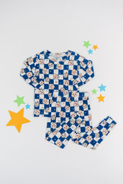 Make bedtime magical with the CoComelon x Dream Big Little Co JJ Starry Night Checkers Dream Set! Featuring a charming navy blue and white checkered print adorned with little stars and the adorable CoComelon crew, this pajama set will delight your little one. Whether they're cuddling up for a story or drifting off to dreamland, this set offers the ultimate comfort and style.