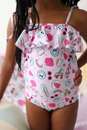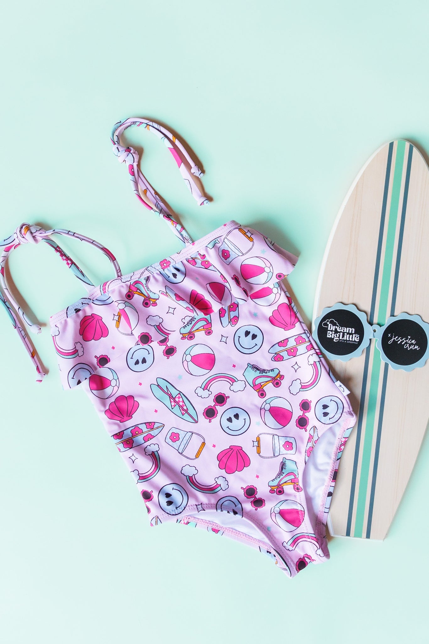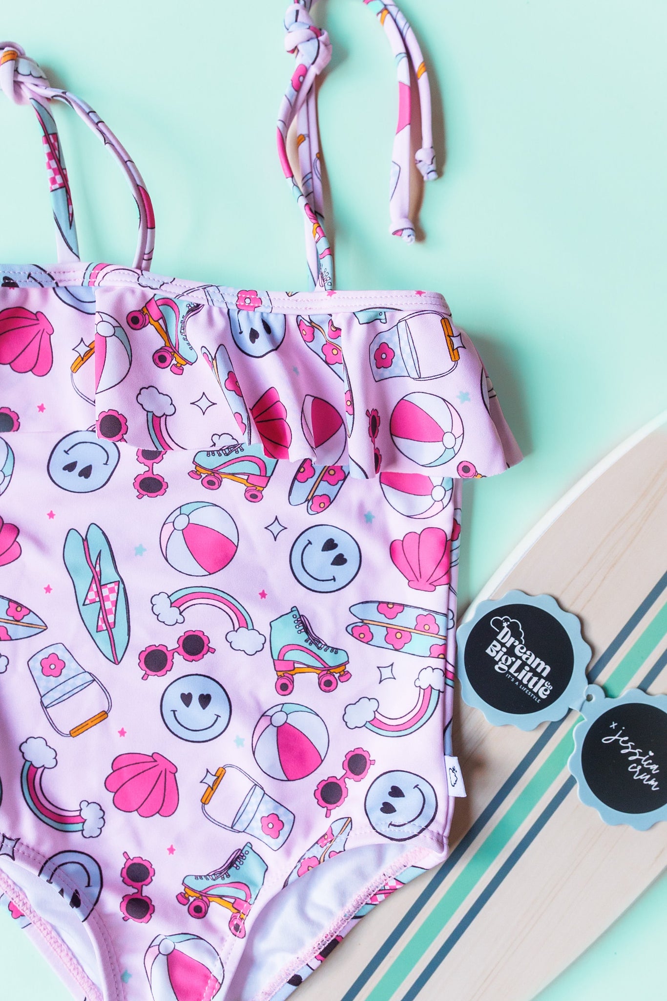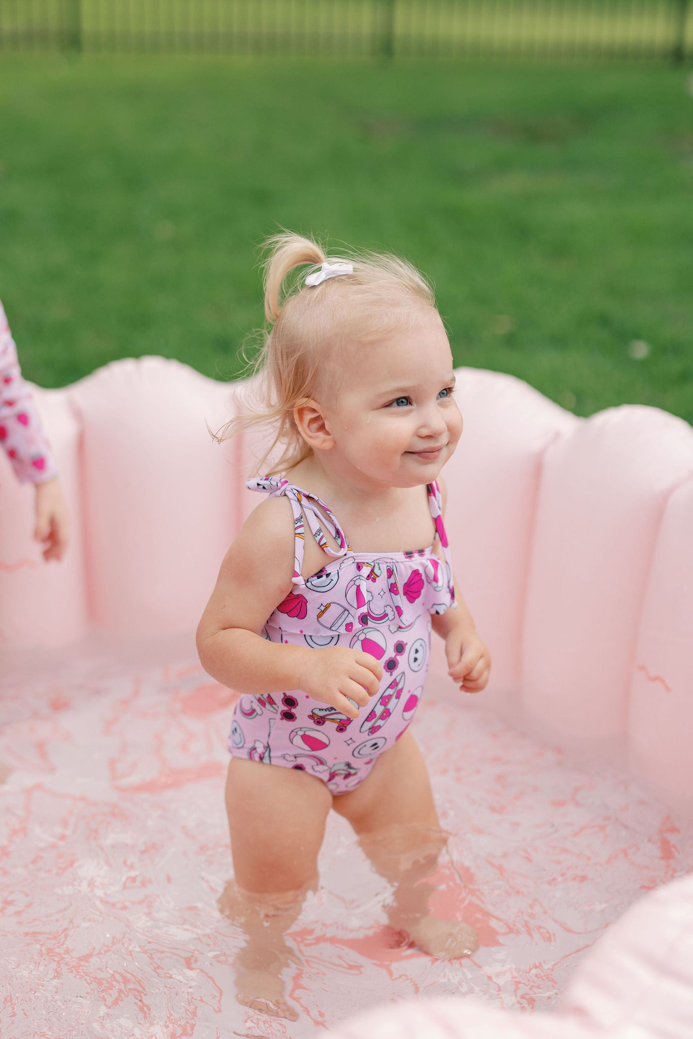 Ready for sunshine and waves? The Dream Swim Suit will make your little one feel like a real-life fashionista! A bow on each side gives it a fun finish and the ruffled bottom completes the look. They will have them making a splash all summer long!