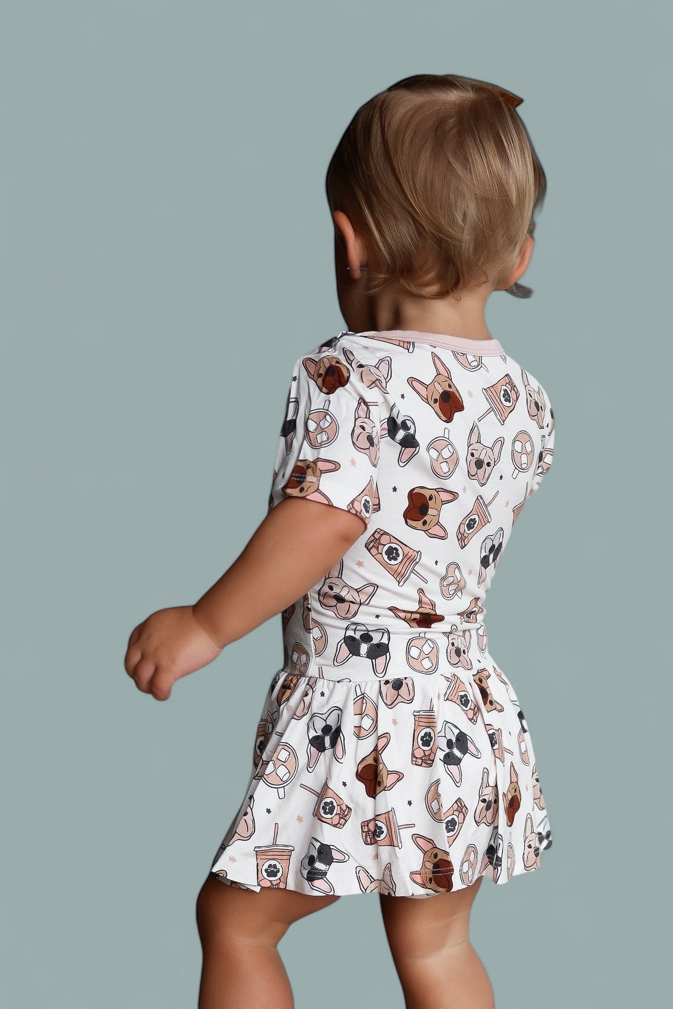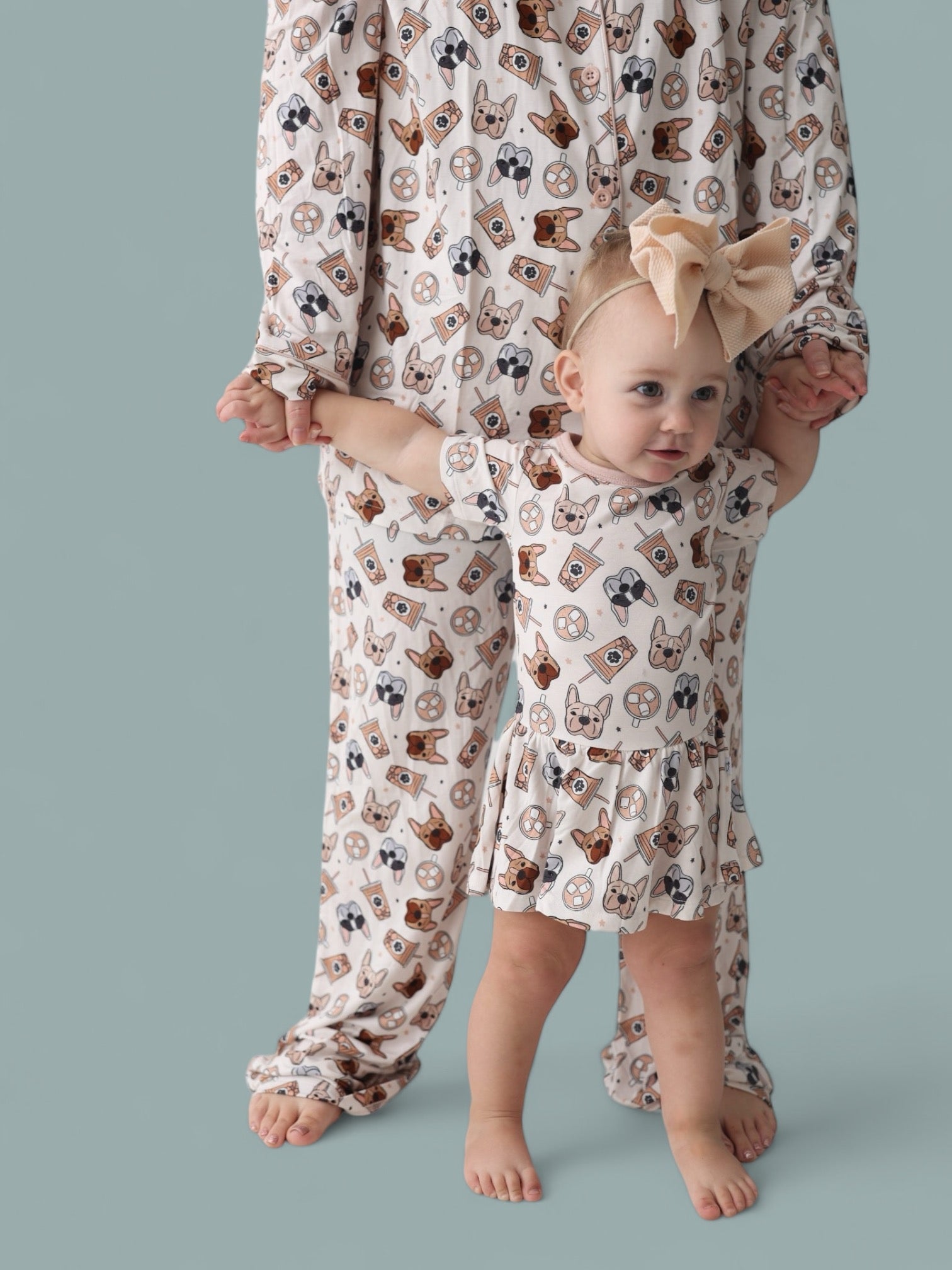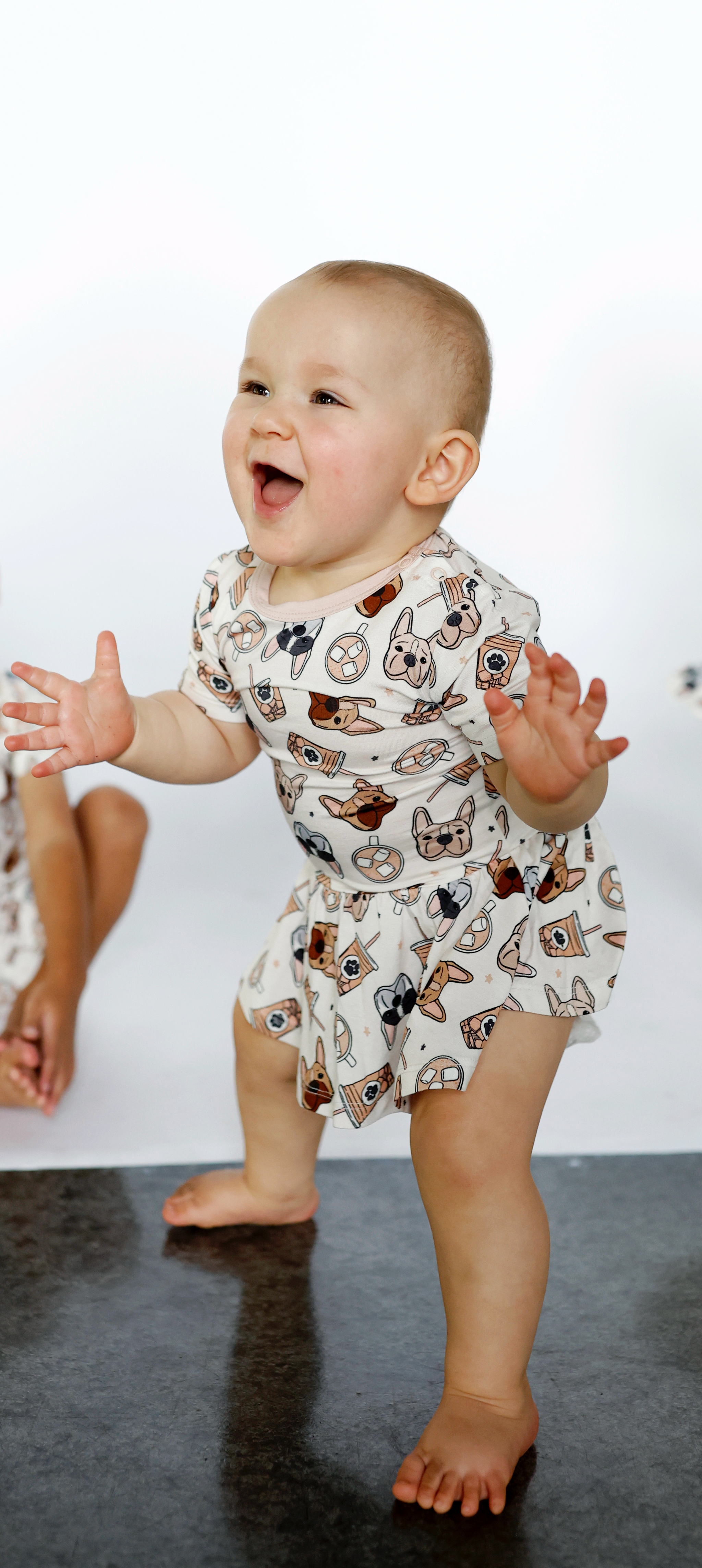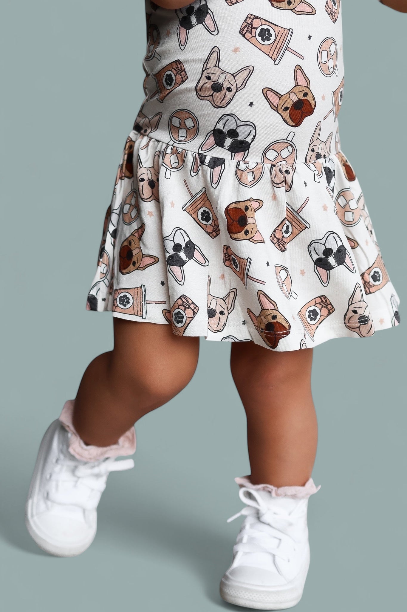 This adorable Dream Bodysuit Dress is a must-have for your little girl! With its cute design featuring favorite drinks and adorable Frenchies, it'll be an instant hit. Don't miss out on this cuteness overload!