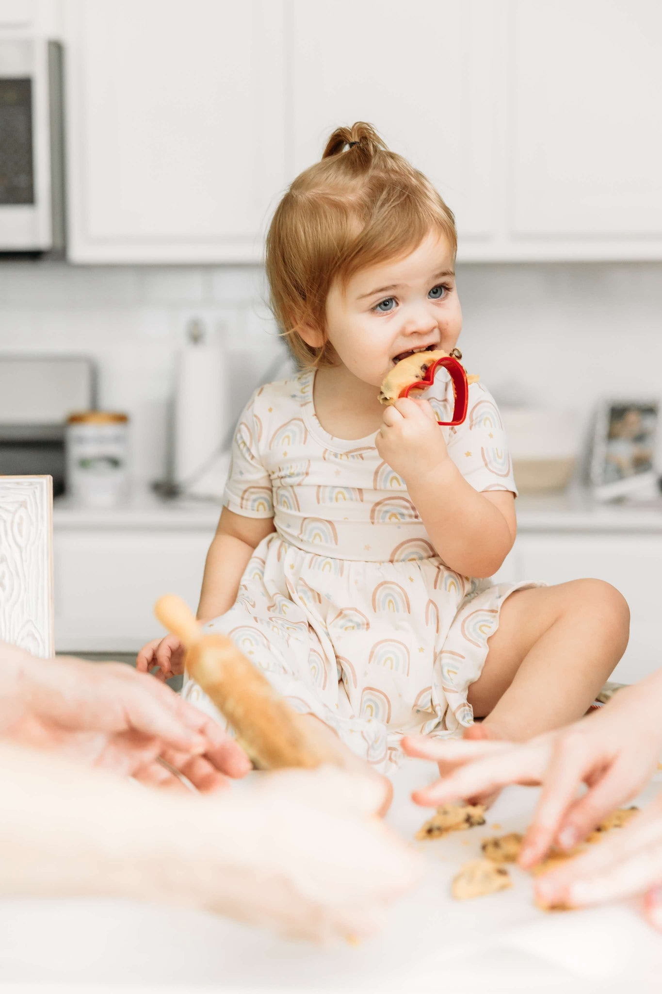 Looking for the perfect dress to make your little girl feel like a princess? Look no further! Our Exclusive Raleigh's Rainbows Dream Ruffle Dress is every little girl’s dream come true. Featuring an adorable rainbow print and charming ruffle details, this bamboo ruffle dress is perfect for any occasion. Whether she’s at a birthday party, a family gathering, or just playing dress-up, this bamboo dress will have her twirling with joy all day long!