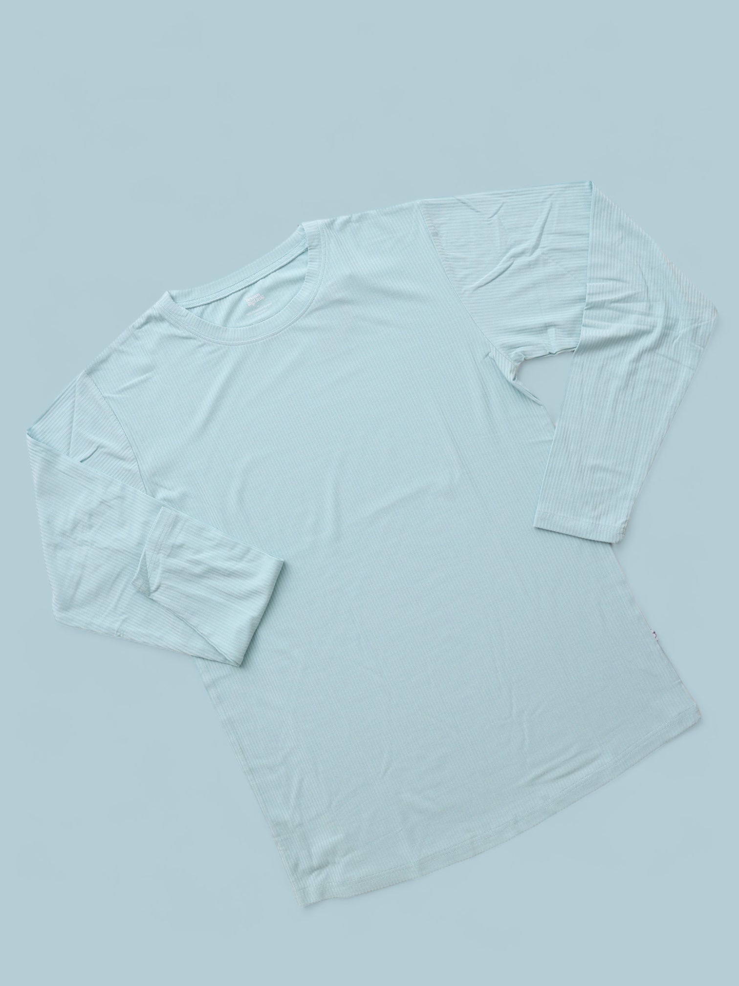 Experience ultimate comfort this fall with our HAZY BLUE RIB tee! Perfect for lounging, this top will keep you looking and feeling great. Don't forget to complete the look with our matching jogger. Upgrade your wardrobe now!