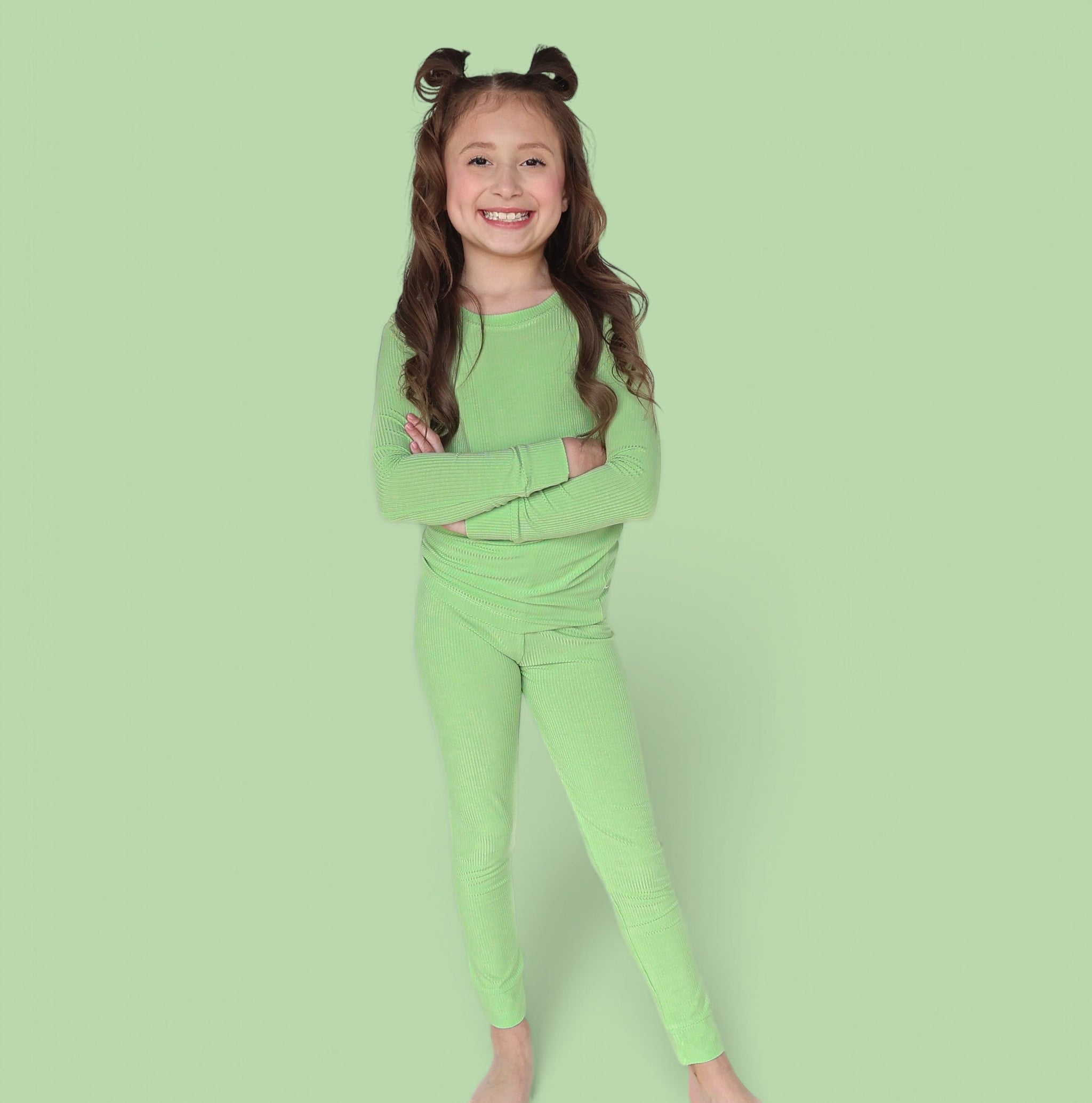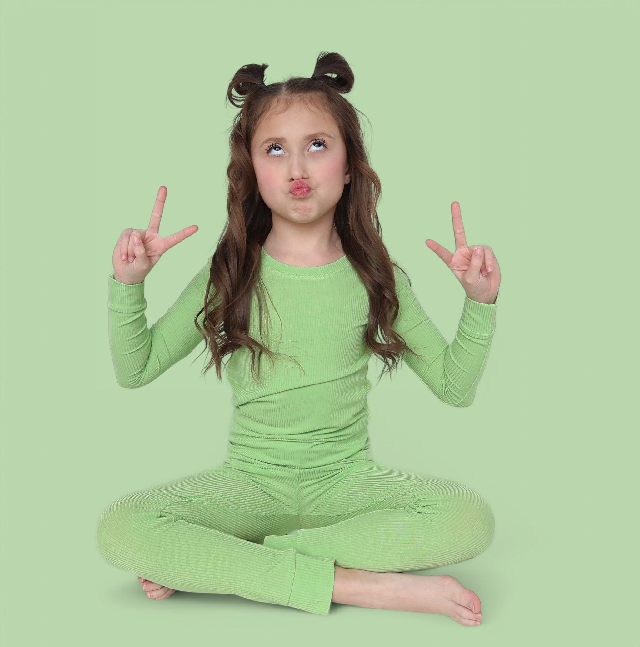 Say hello to spring with the vibrant Key Lime Dream Set! This beautiful green pajama set is as fresh as a spring breeze and just as delightful. Crafted from the softest, breathable bamboo viscose, this set ensures your little one stays cool, cozy, and comfortable from morning playtime to bedtime snuggles.