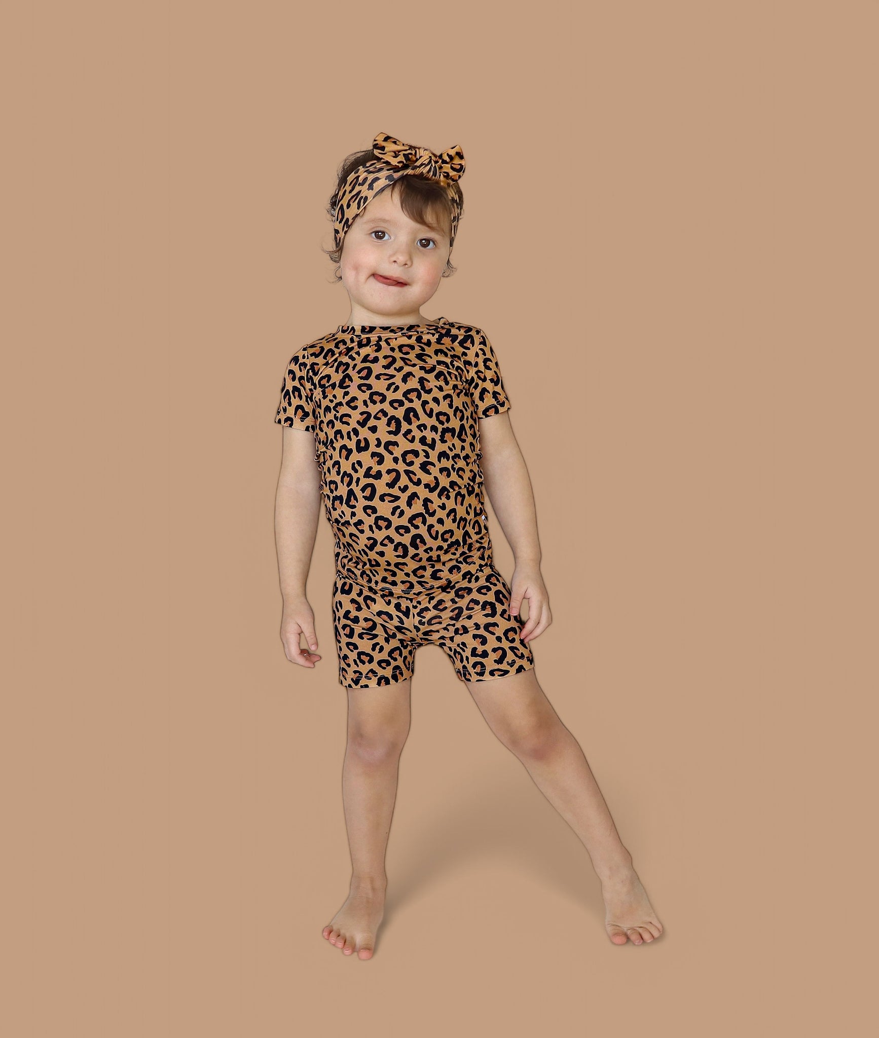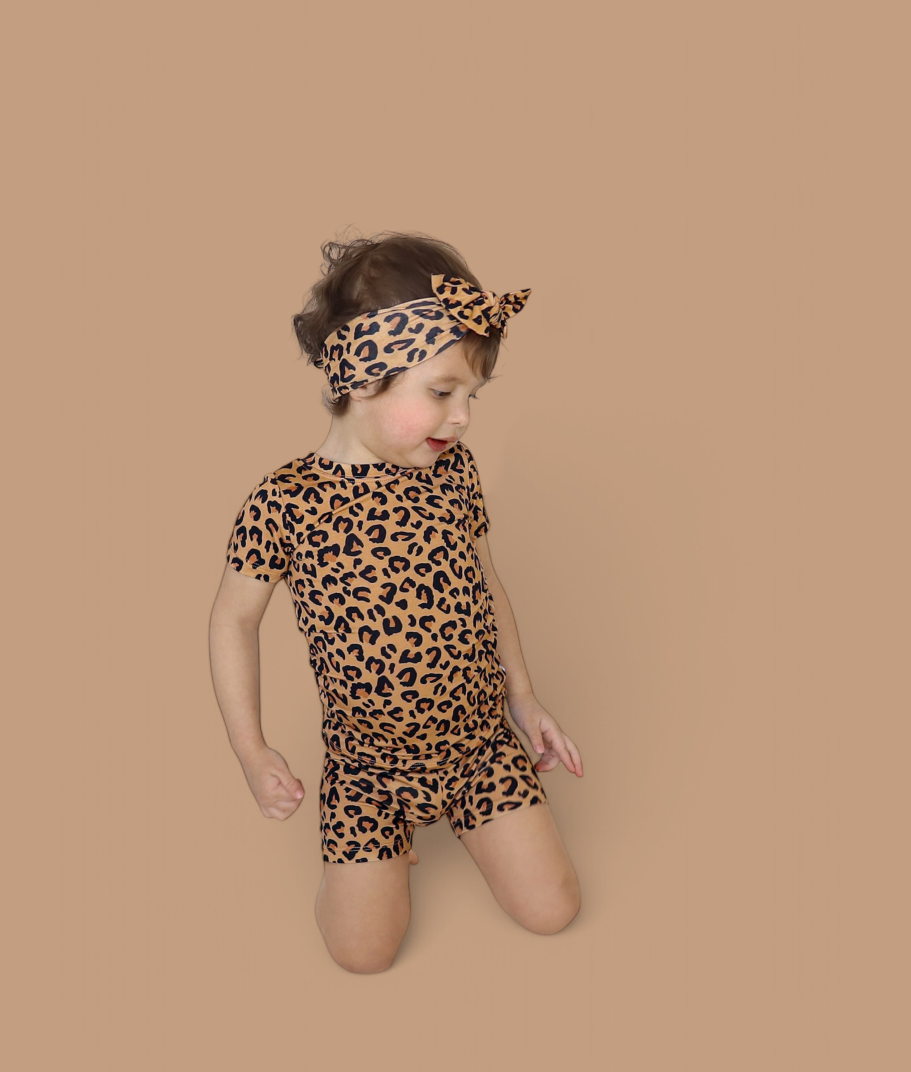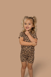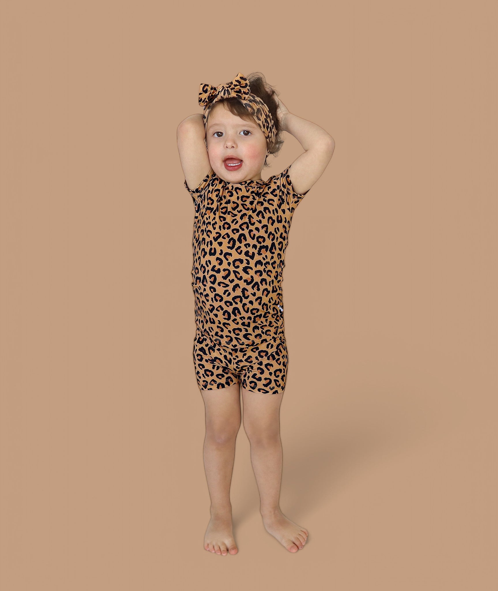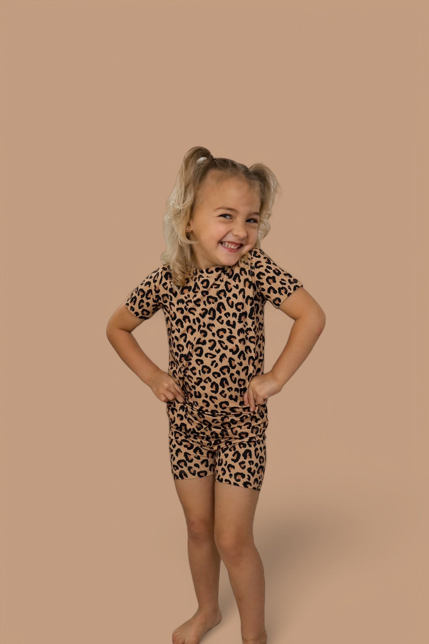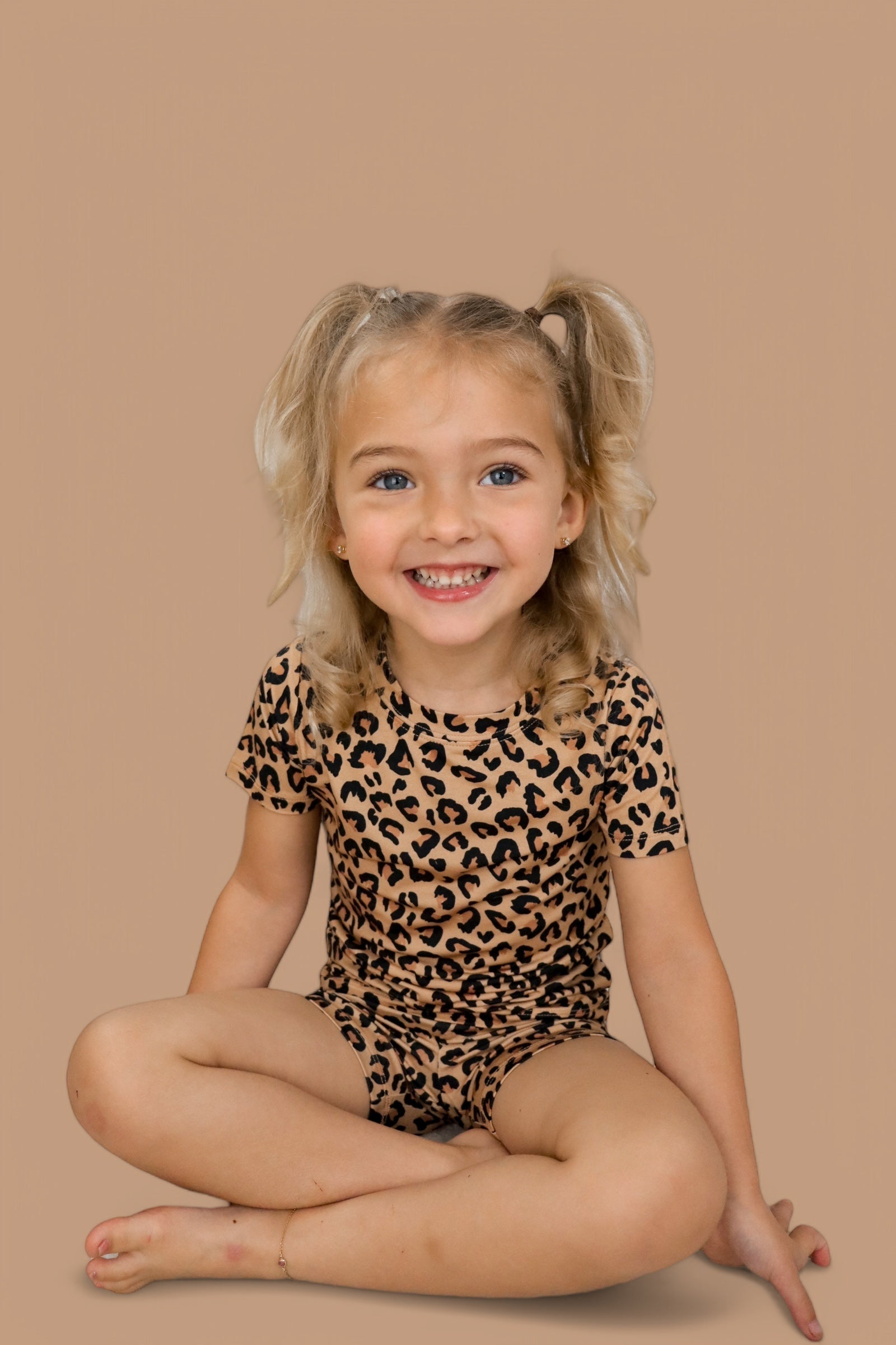 Perfect for bedtime, lounging, or playtime, the Leopard Dream Short Set is the ultimate blend of style and softness. Let them roam free in comfort while making a statement in this iconic print. Because even the smallest wild hearts deserve the best in dreamy sleepwear!