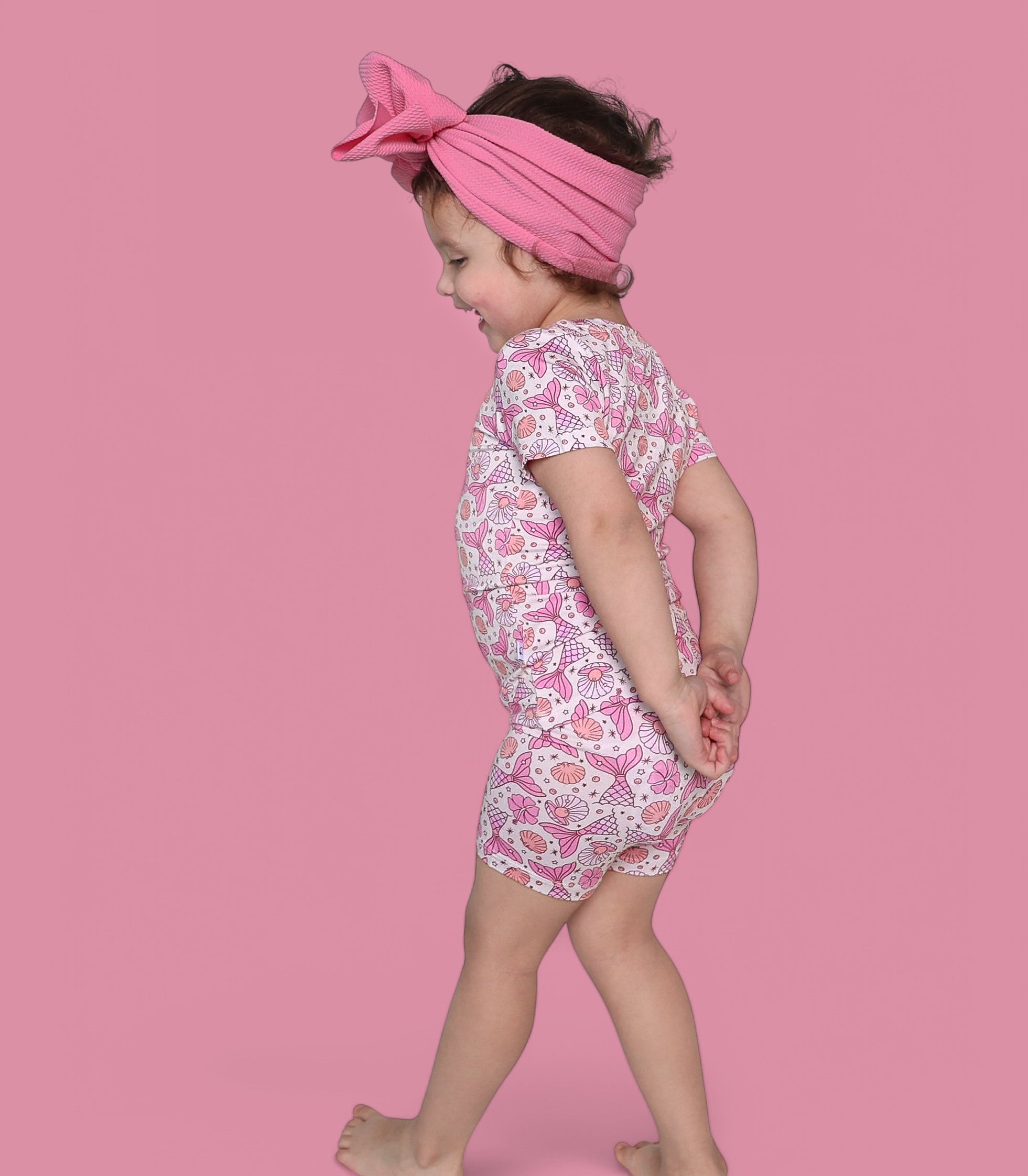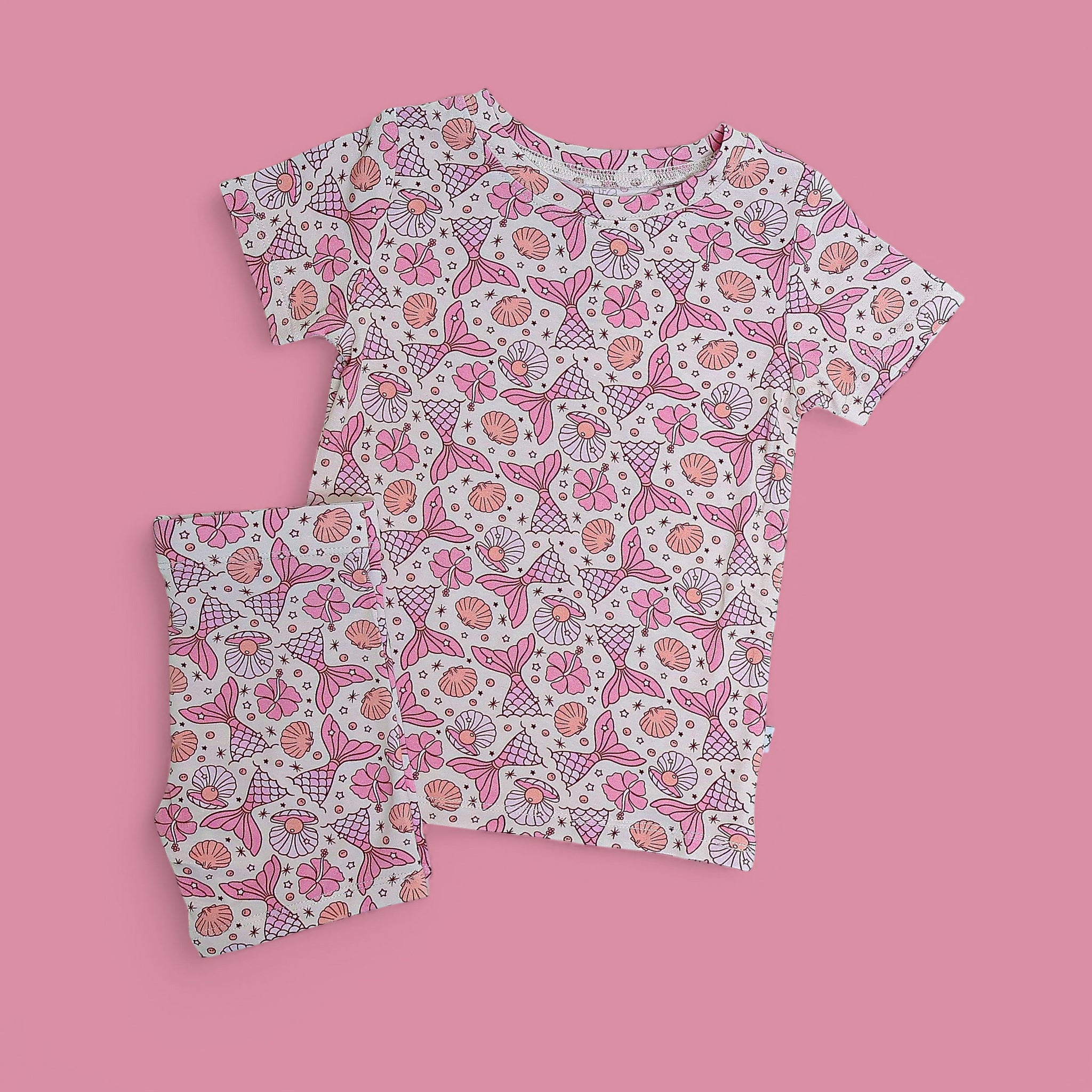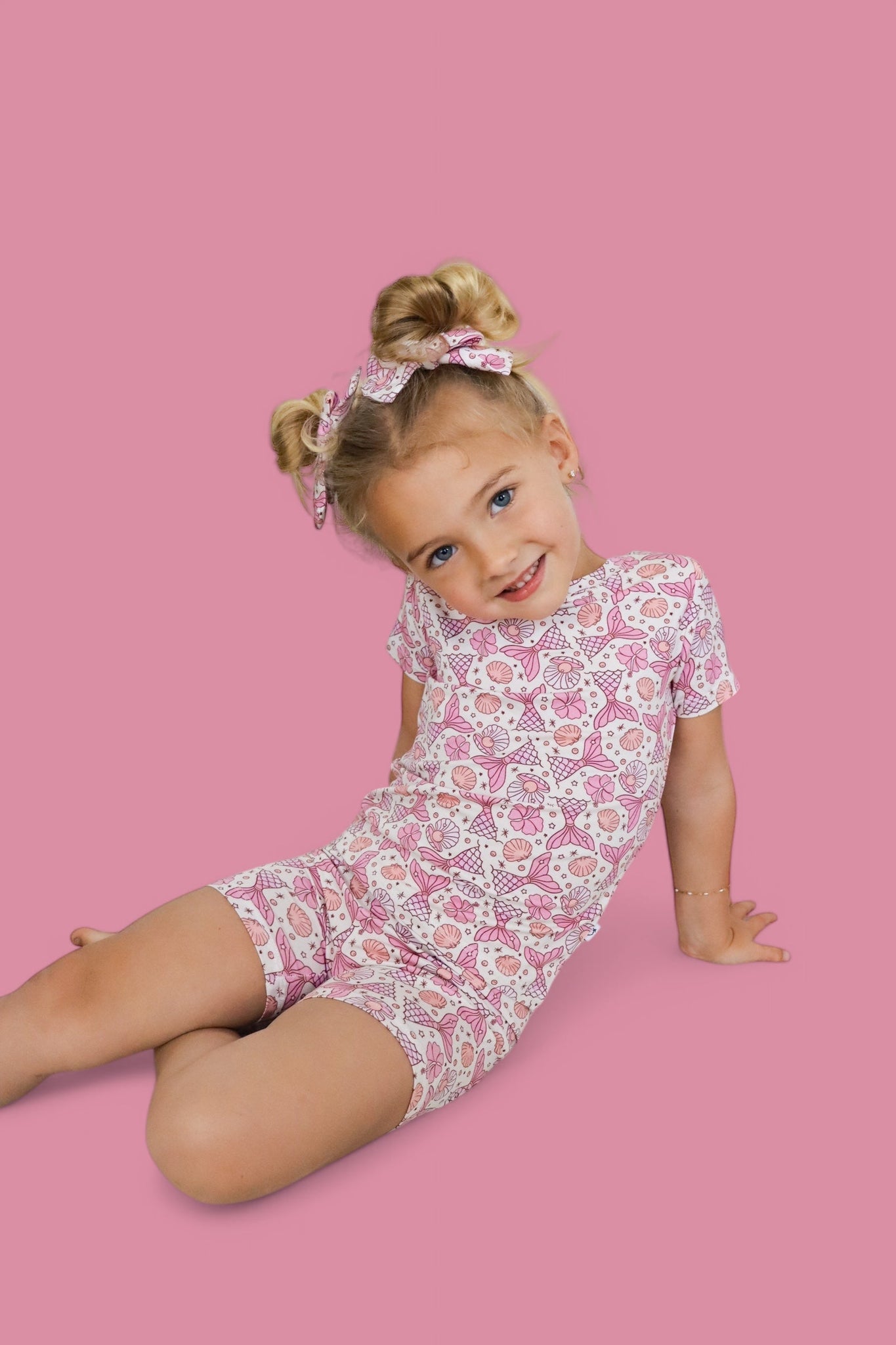 Make bedtime (or anytime!) a magical moment with the Magical Mermaid Dream Short Set. Featuring our whimsical mermaid print filled with twirling tails, sparkly stars, and sweet seashells in dreamy shades of pink, this set is perfect for your little sea-loving sweetheart.