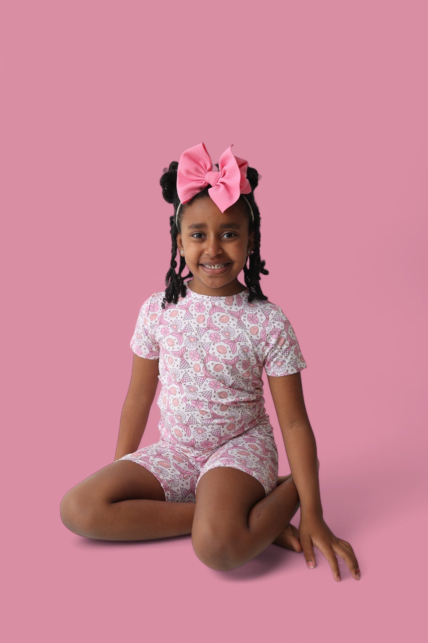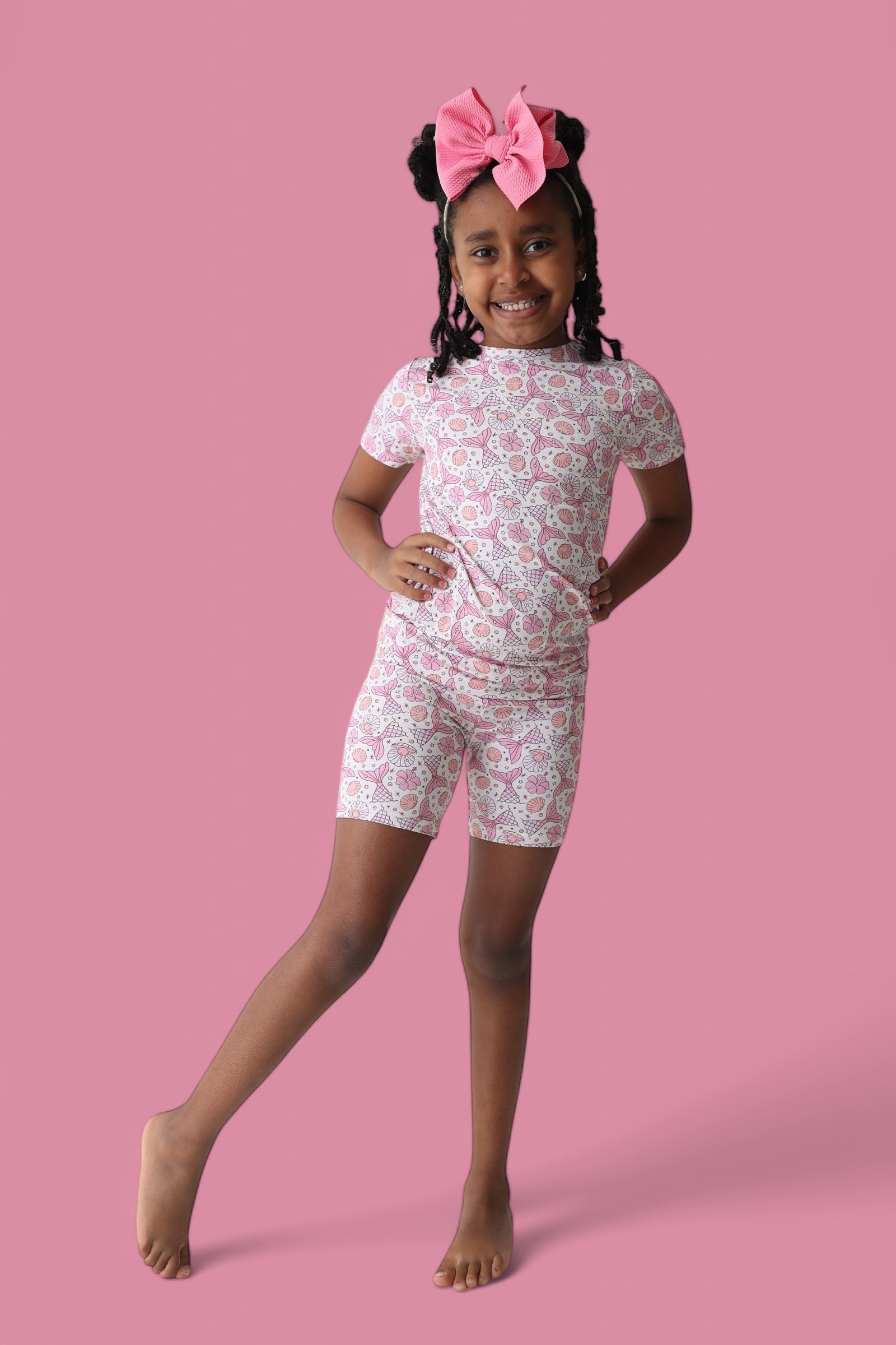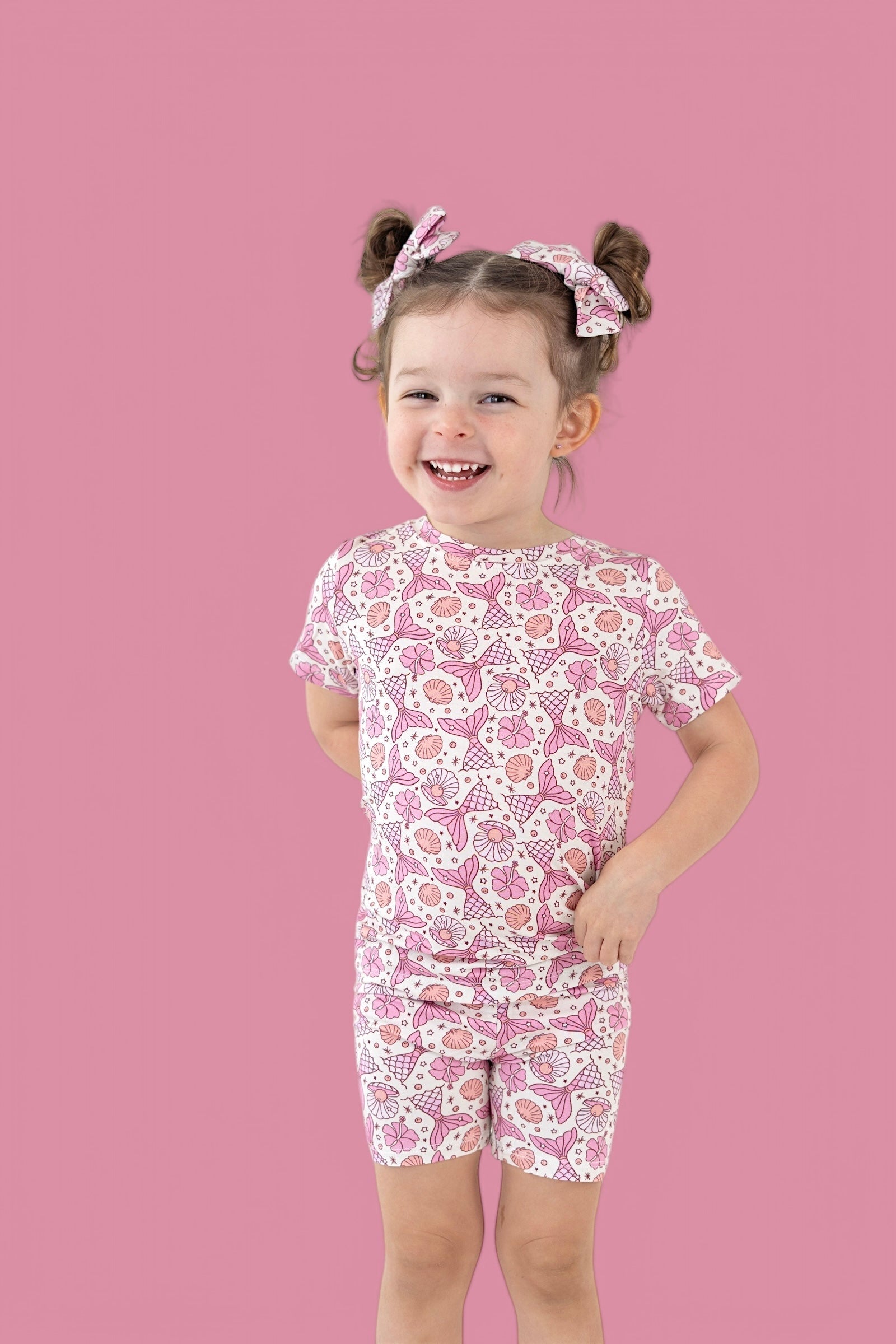 Make bedtime (or anytime!) a magical moment with the Magical Mermaid Dream Short Set. Featuring our whimsical mermaid print filled with twirling tails, sparkly stars, and sweet seashells in dreamy shades of pink, this set is perfect for your little sea-loving sweetheart.