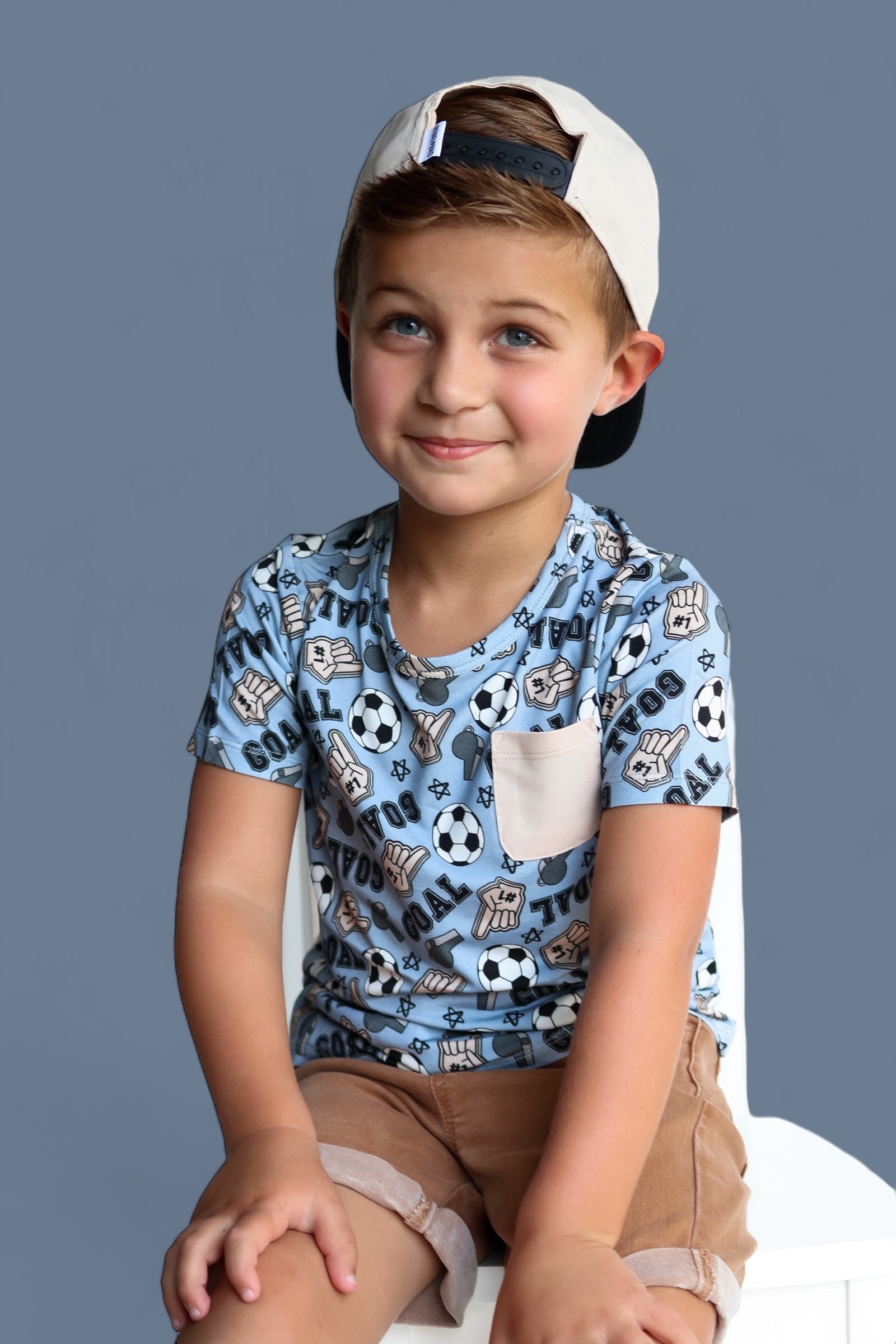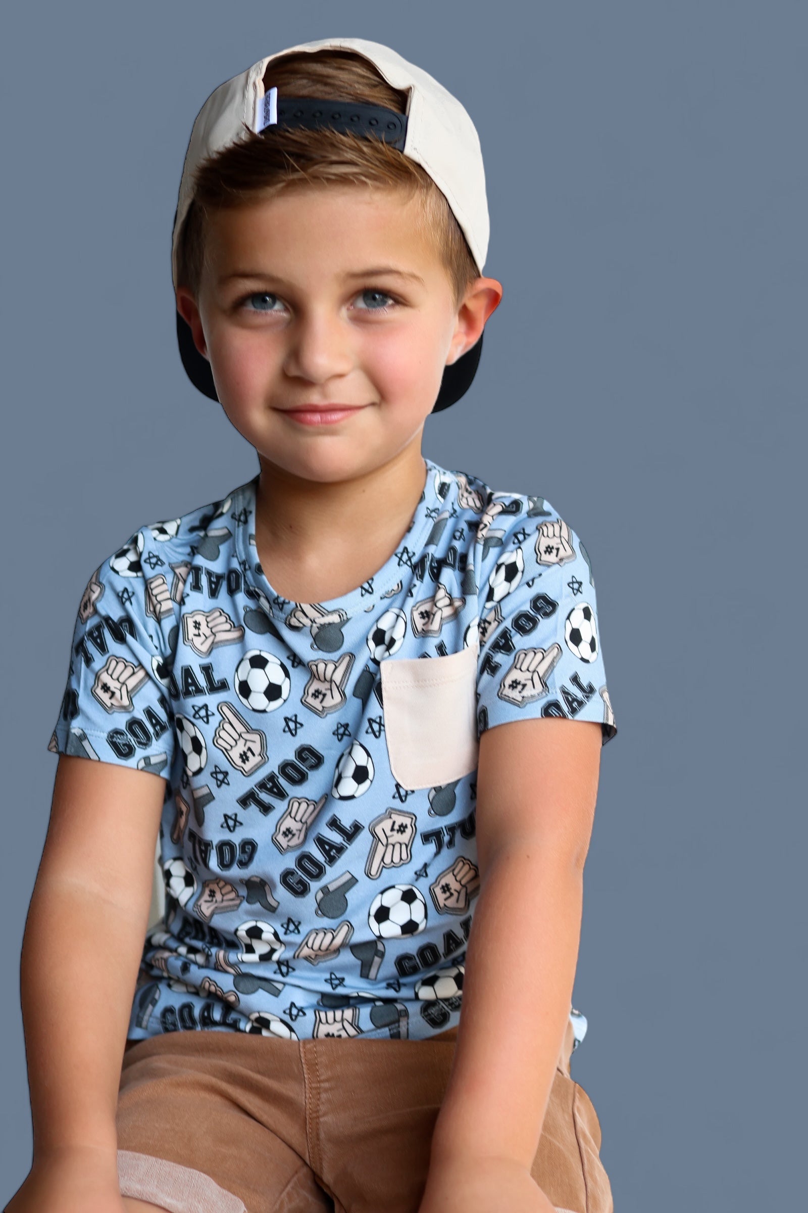 Introduce the thrill of soccer to your little one with our OH MY GOAL DREAM POCKET TEE! With its stylish design and comfortable fit, your child will proudly display their passion for the sport. Inspire a love for soccer in your child with this must-have tee!