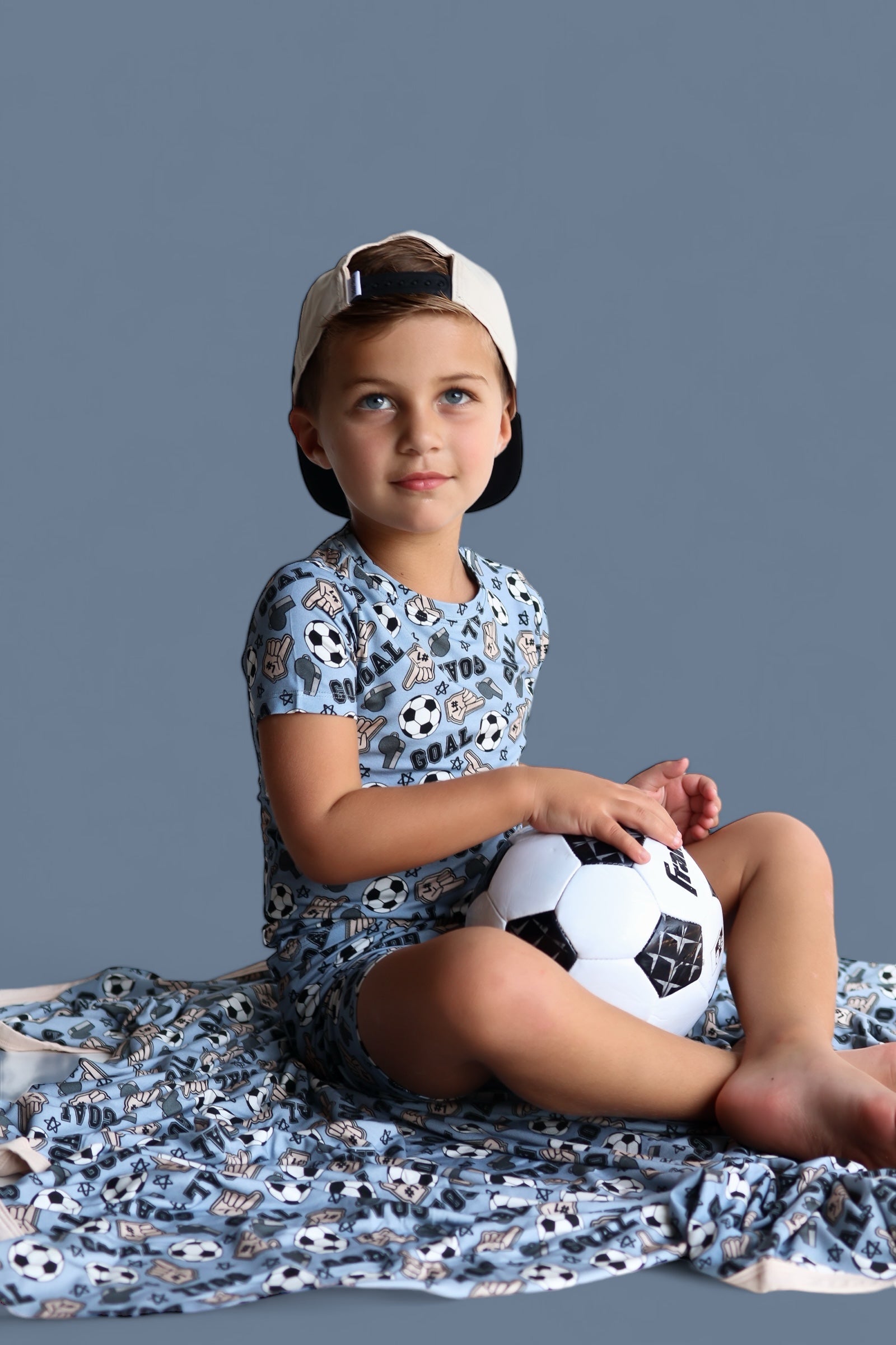 This OH MY GOAL DREAM SHORT SET is perfect for little SOCCER fans! Whether for sleep or play, the fun design and comfortable fit make it a must-have. Show your love for the sport with this exciting set!