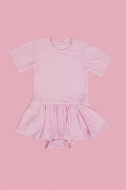 Welcome the beauty of spring with the charming Pink Rose Dream Bodysuit Dress, inspired by the soft blush of a blooming rose. This pale pink dress combines elegance and comfort, making it the perfect outfit for your little girl to shine during the season of blossoms.