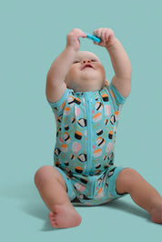 The sushi-themed print is as delightful as it gets—perfect for food-loving families or anyone who appreciates an adorable and unique design. Make your little one the star of the playdate with this fun and functional romper.