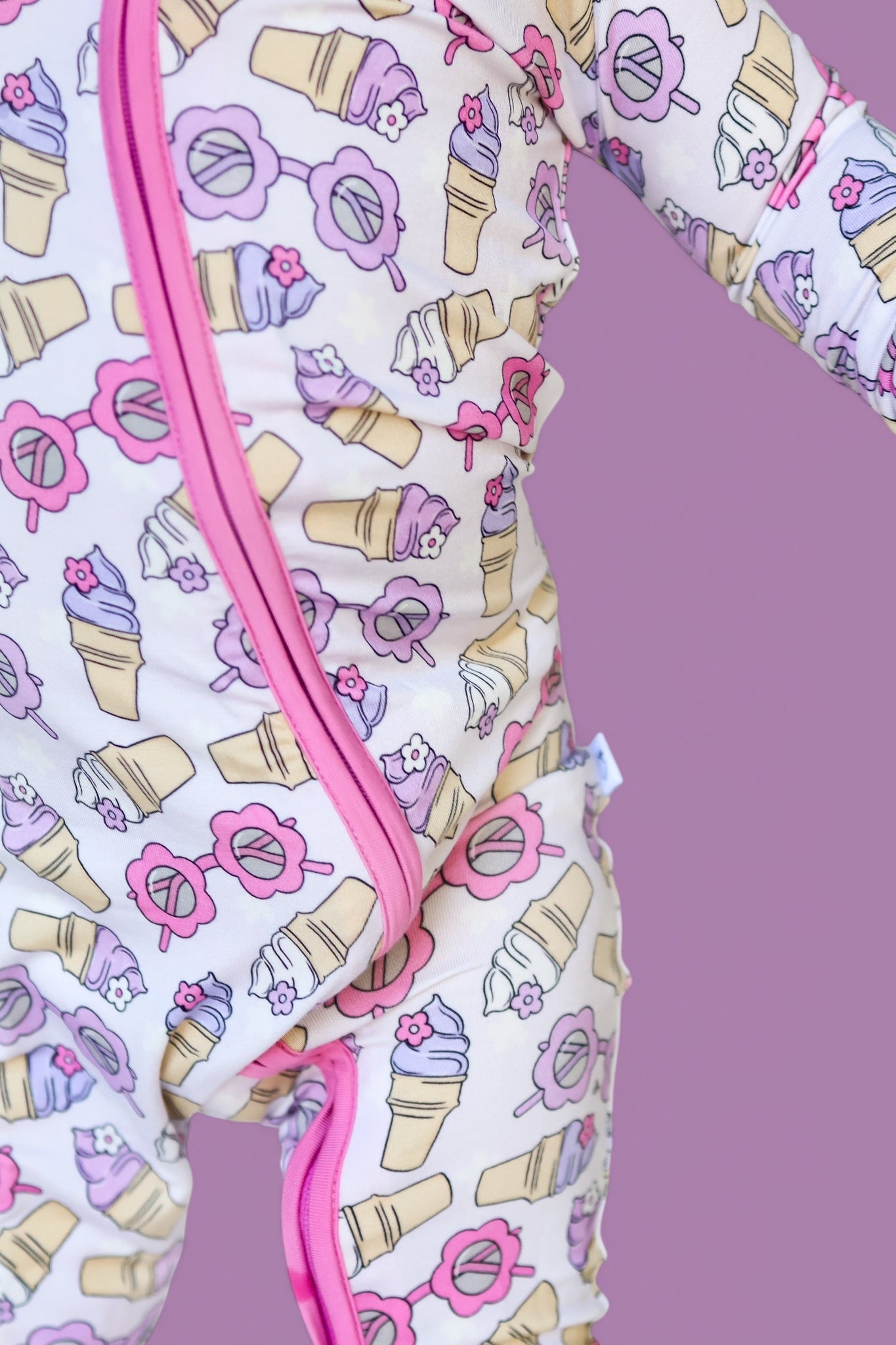 Made from the softest and most breathable bamboo viscose material, your babe won't want to take this off! Designed for all the love and extra snuggles! Sleep and play with zero irritation with our tag-less garment tags! Can't miss our fold over hand cuffs and footie option- up to 12-18m for the perfect transition to sleep! Easy diaper changes, you got it-made with a double zipper feature. We promise you'll love it!