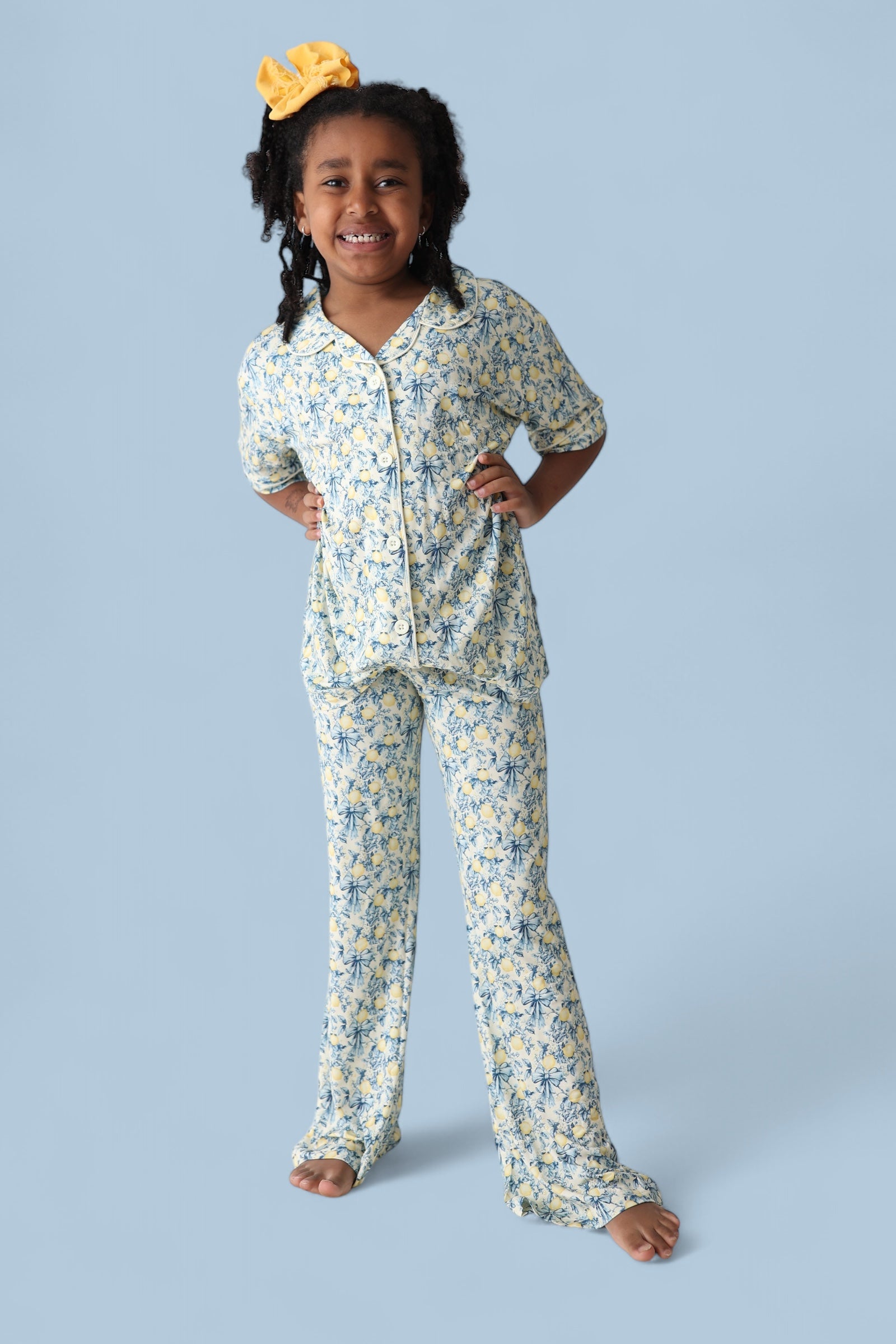 Step into a world of timeless elegance with our Vintage Citrus Toile Dream Girl’s Flare Set—a vision of charm and sophistication inspired by the delicate artistry of classic French toile. This enchanting set features a breathtaking blue botanical design, adorned with golden lemons and romantic bows, evoking the beauty of a sun-drenched orchard in the heart of Provence.