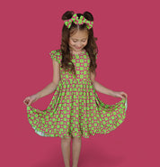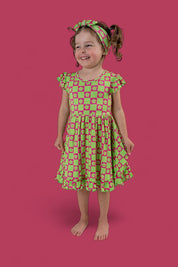 Get ready to twirl in style with the Wild Daisy Checkers Dream Ruffle Dress! This vibrant, playful dress is designed with the most energetic colors—neon lime green and bright pink checkers, with a delightful touch of lime green daisies, making it the perfect standout piece for your little one’s wardrobe.
