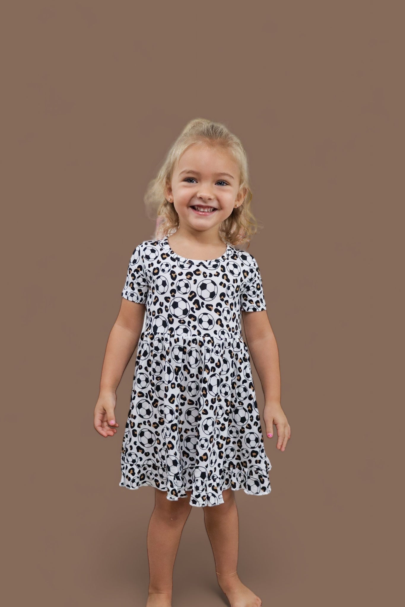 Get your little girls ready to spin in excitement over our WILD GOALS DREAM RUFFLE DRESS! This dress is perfect for any young fan, with its fun and playful ruffle design and bold "WILD GOALS" print. Let your child show off their love for their favorite sport with this dress that will make them stand out!