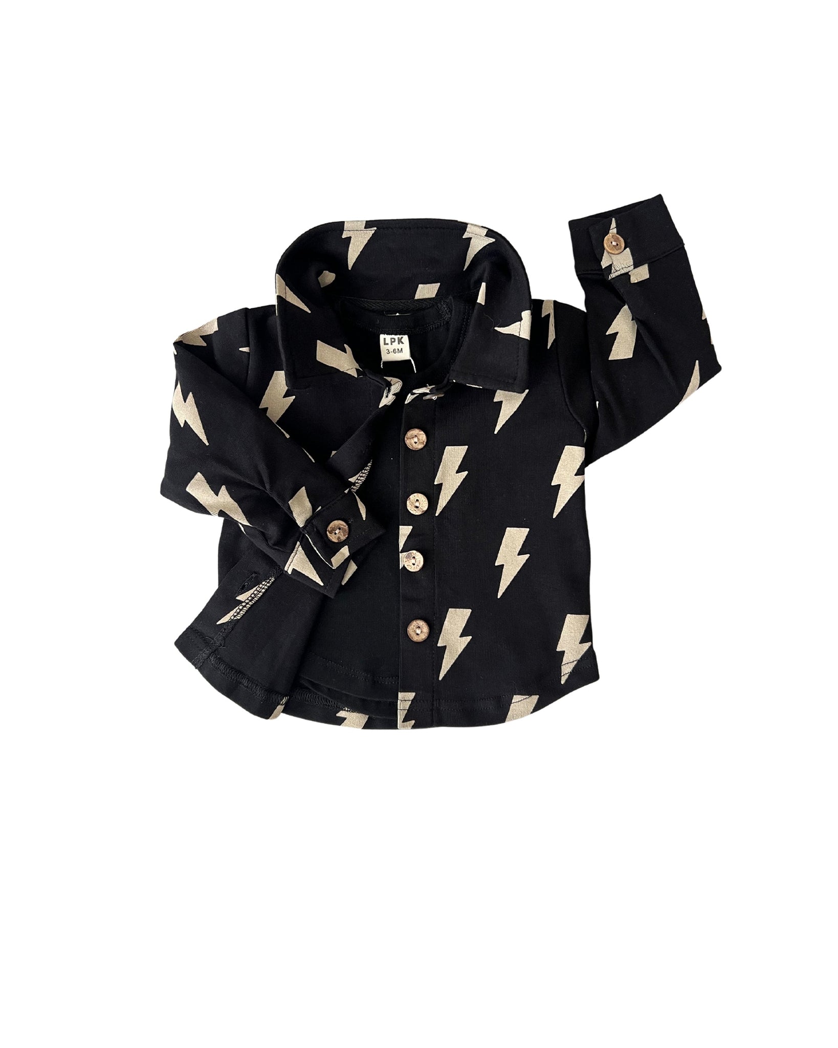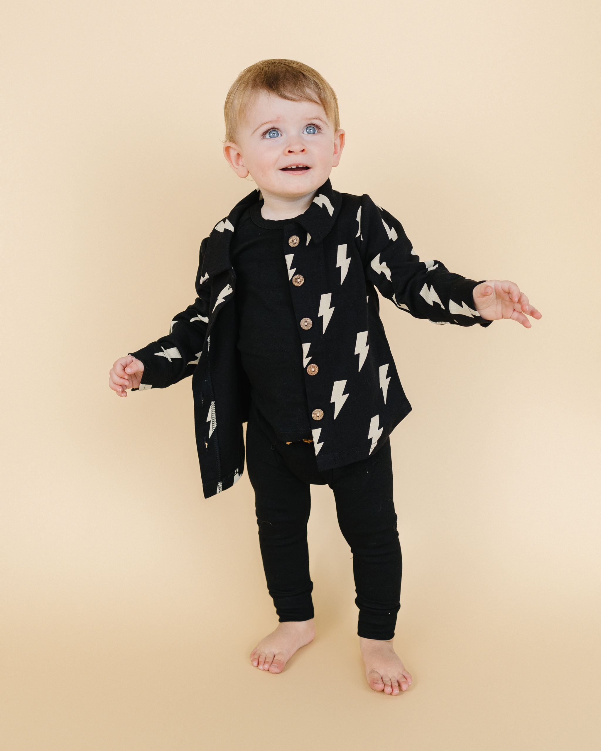 It’s shacket season! Made from soft cotton, this piece is perfect for layering or wearing on its own. With a functional button closure at the front, you can effortlessly transition from casual to dressy, making it a versatile addition to your wardrobe. Pair it with one of our cotton lounge sets and a smiley beanie to complete the look! Available in sizes from newborn to 9Y.