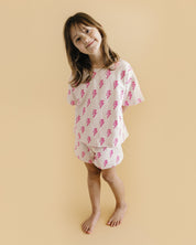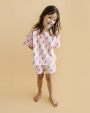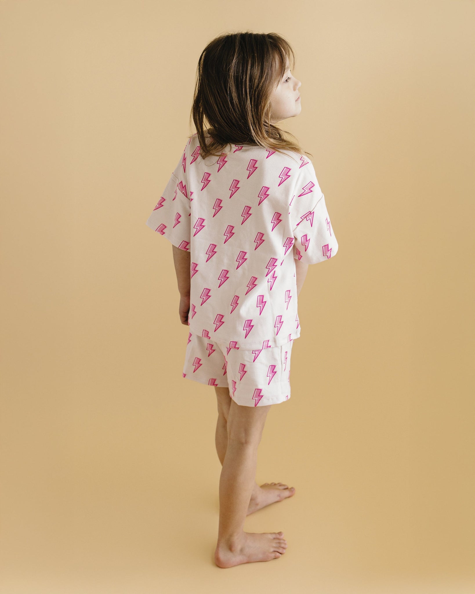Add a bold twist to their wardrobe with our Pink Bolts shorts set! Featuring a solid pink background with dark pink lightning bolts, this set combines vibrant color with an energetic design. Ideal for playtime or casual outings, it’s made for comfort and style throughout the day.
