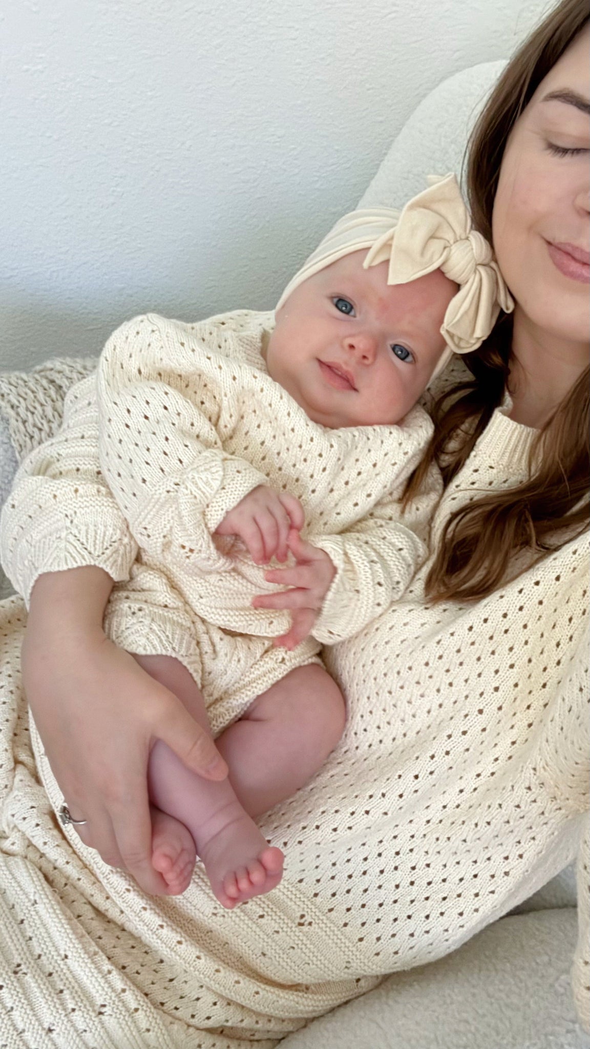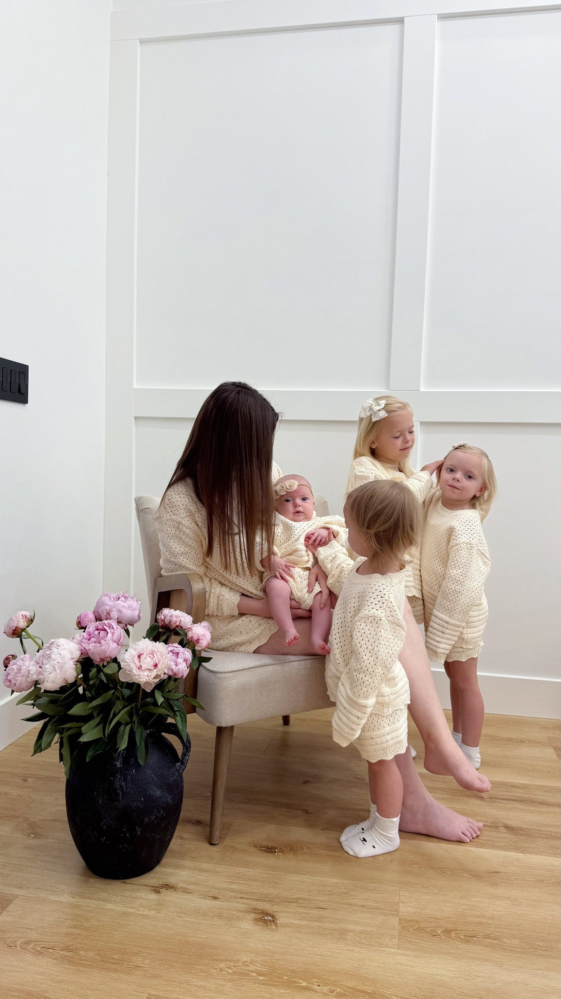 Inspired by beachy, boho, crochet, this summertime set combines elegance and playfulness. The light weight sweater features delicate scalloped edges, with rows of pointelle knit detailing which adds a touch of texture and refinement to the design. The matching shorts offer a relaxed fit, allowing for plenty of movement while maintaining a chic, stylish look. Whether for playtime with your little one or a casual outdoor outing, this set is a timeless choice that combines sweet details with effortless style.