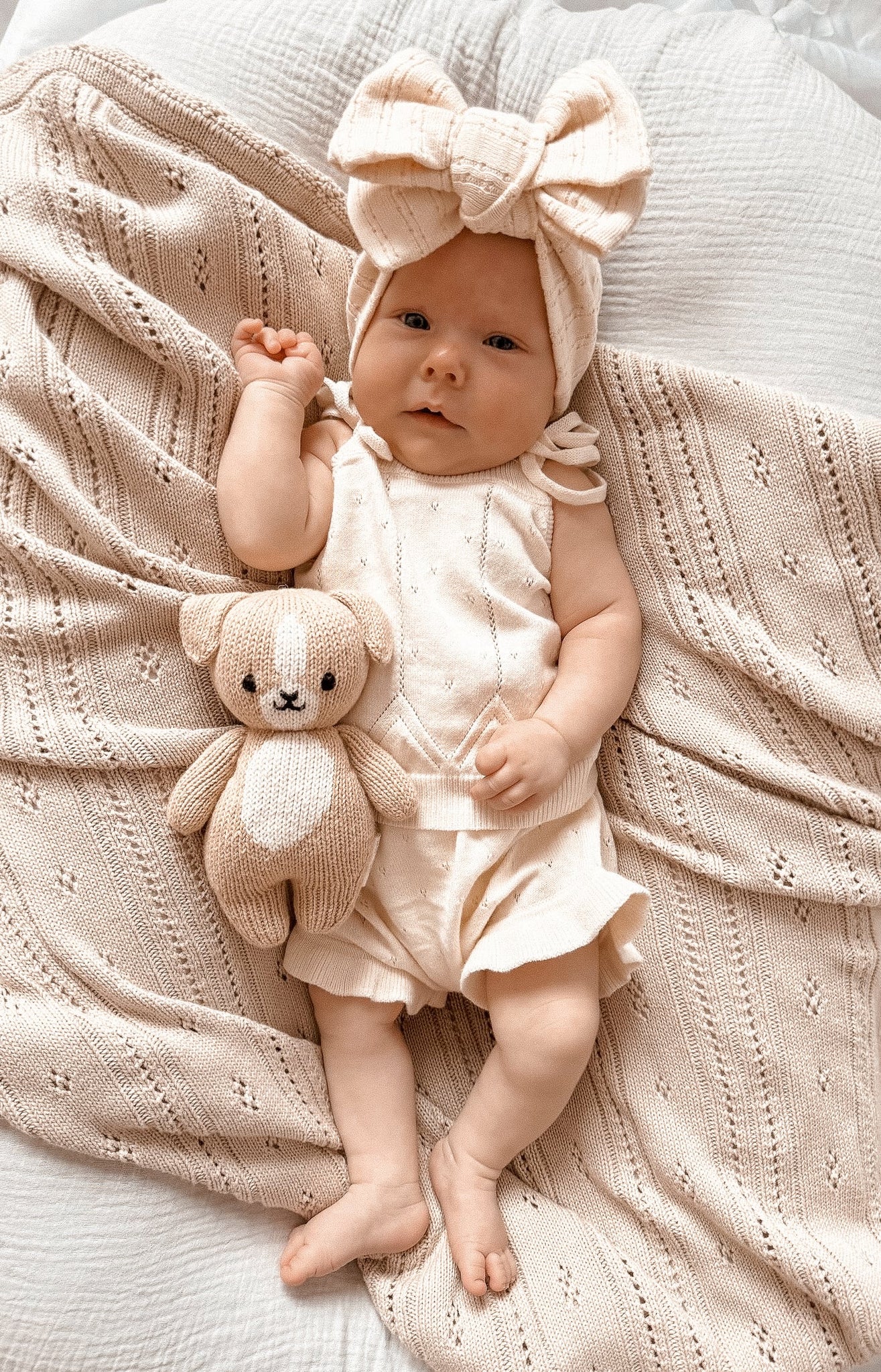 Pointelle Baby Blanket - Beige