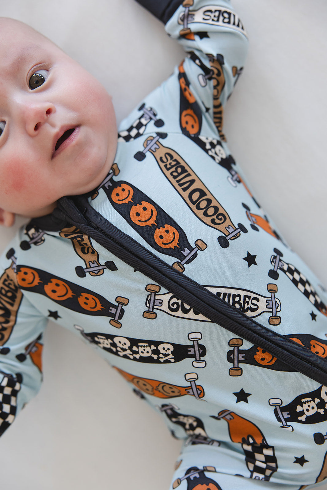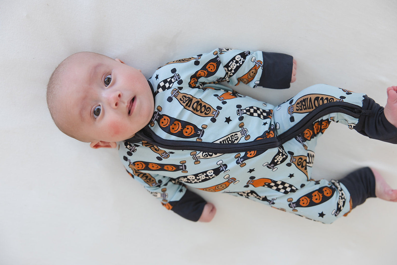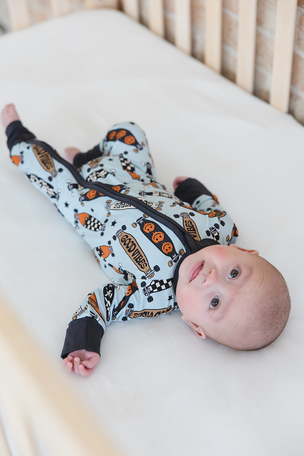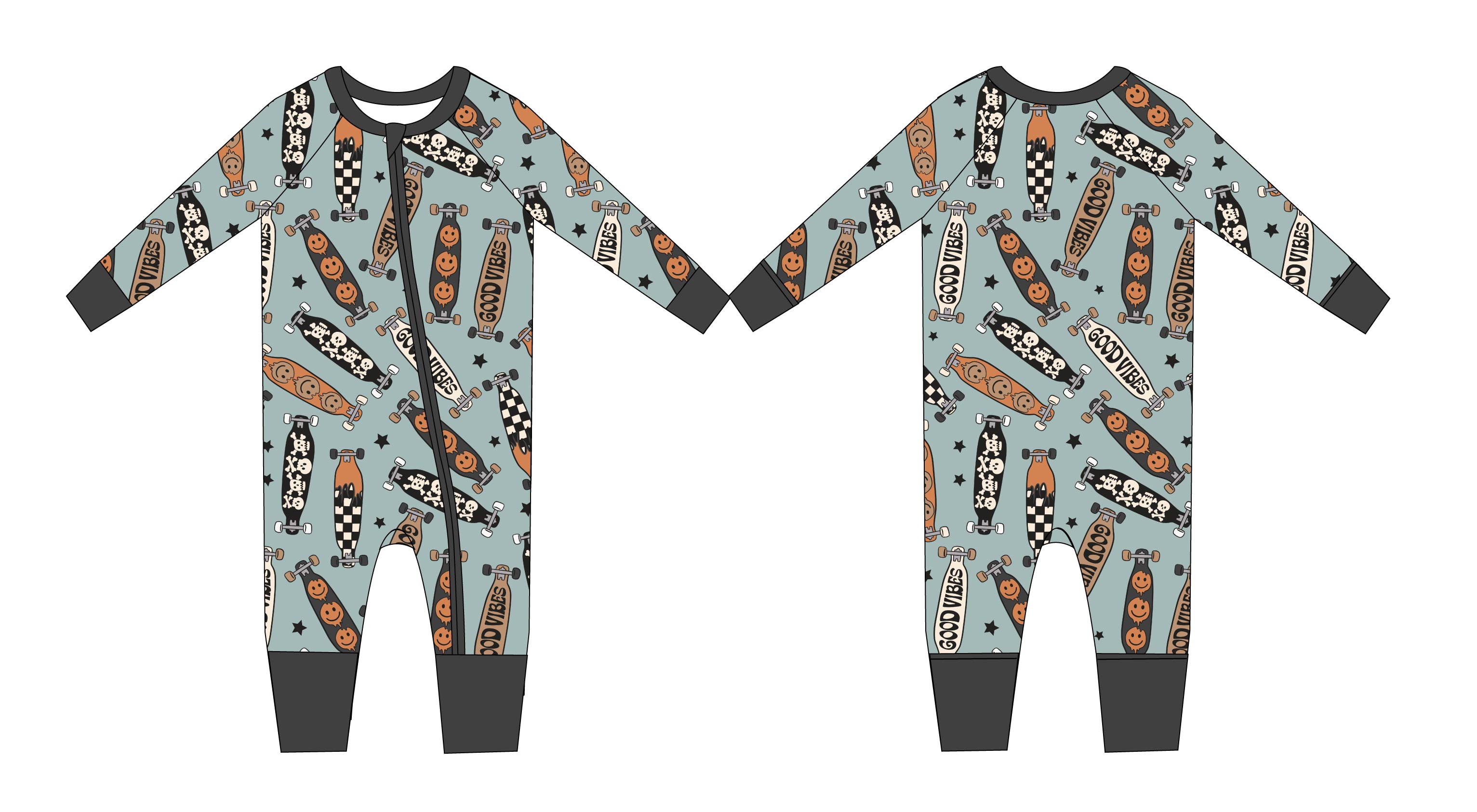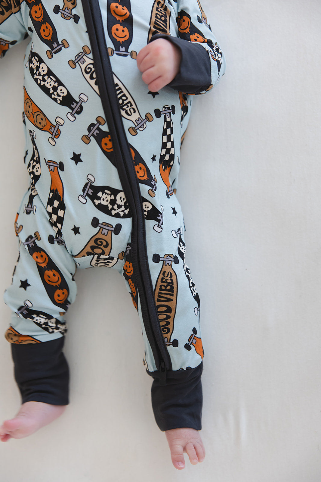 With fold-over wrist and ankle cuffs for added comfort and a double zipper for effortless diaper changes, our zippies are a game-changer for busy parents. The tagless design guarantees irritation-free wear, making them ideal for all-day lounging and play.