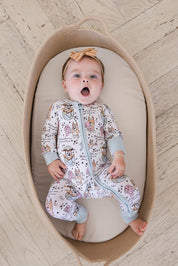 With fold-over wrist and ankle cuffs for added comfort and a double zipper for effortless diaper changes, our zippies are a game-changer for busy parents. The tagless design guarantees irritation-free wear, making them ideal for all-day lounging and play.
